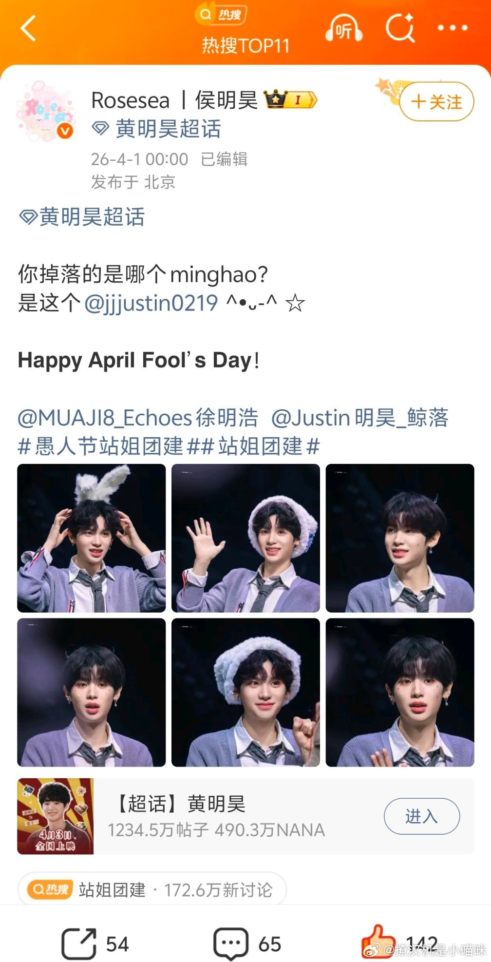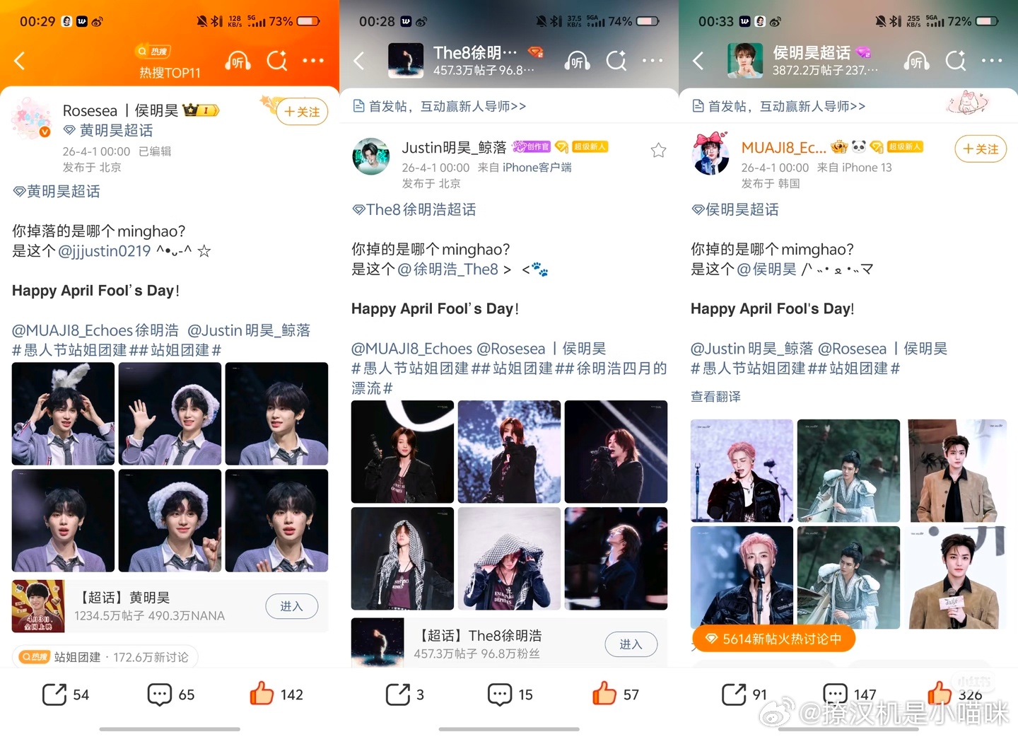站姐团建太可爱了,三个“明hao”的站姐就这样可爱!!!愚人节站姐团建!三个“明hao”站姐互相发图真的很萌啊啊啊啊啊侯明昊黄明昊徐明浩