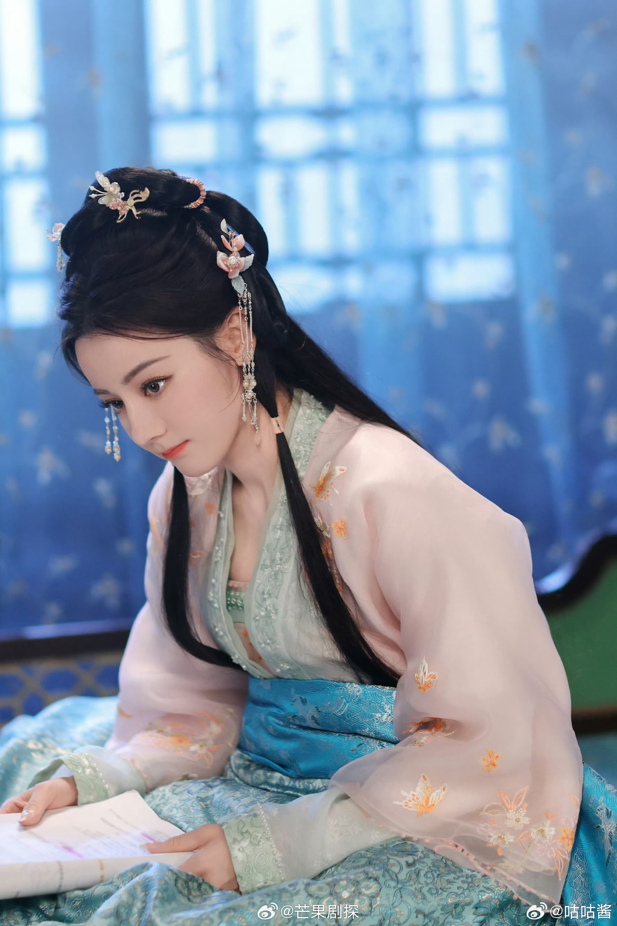 迪丽热巴人间限定款贺small迪丽热巴片场随时随地看剧本 剧本不离手啊,反复看剧