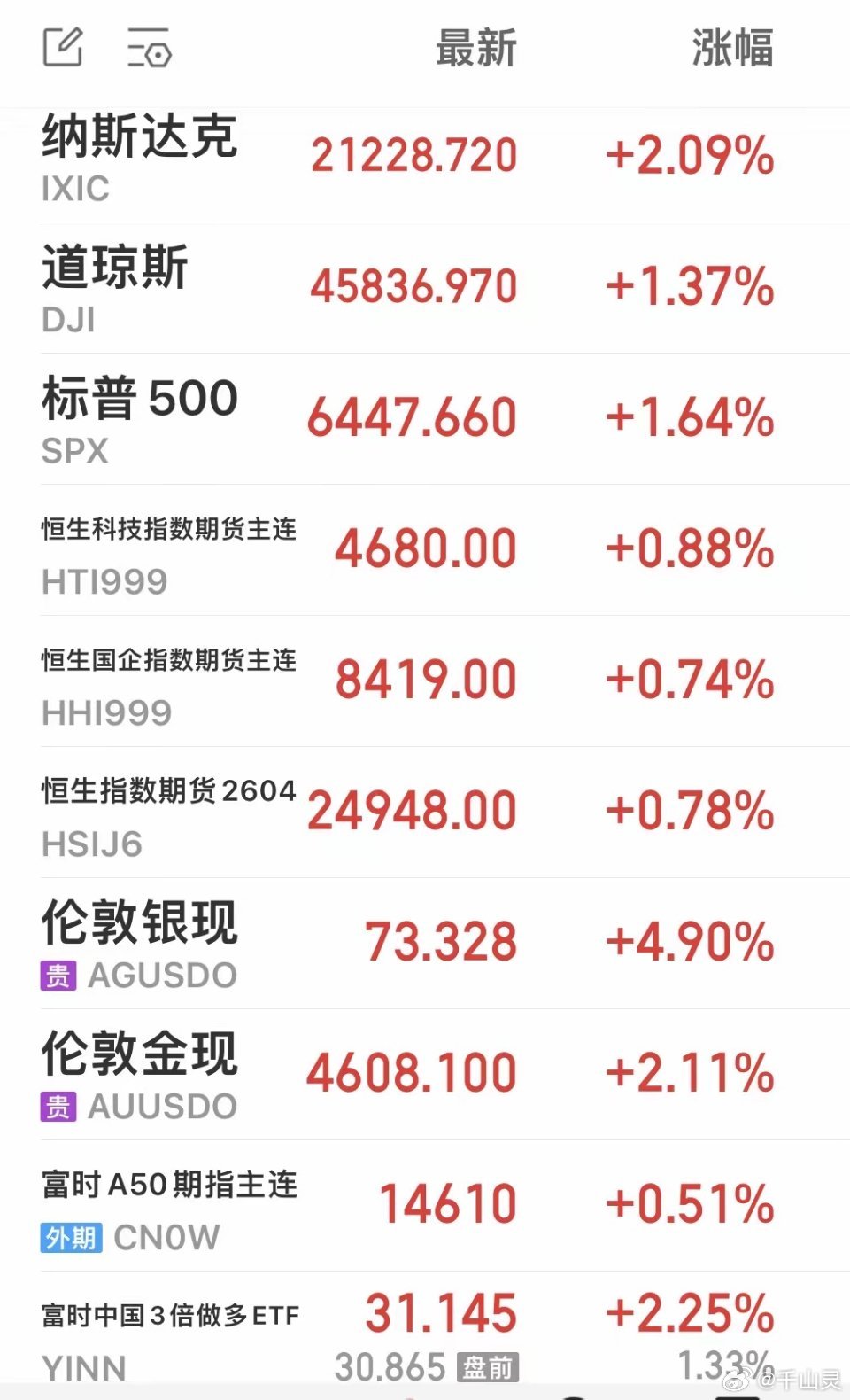 黄金、白银现货大涨!三大港股股指期货夜盘上涨!富时A50也在上涨!