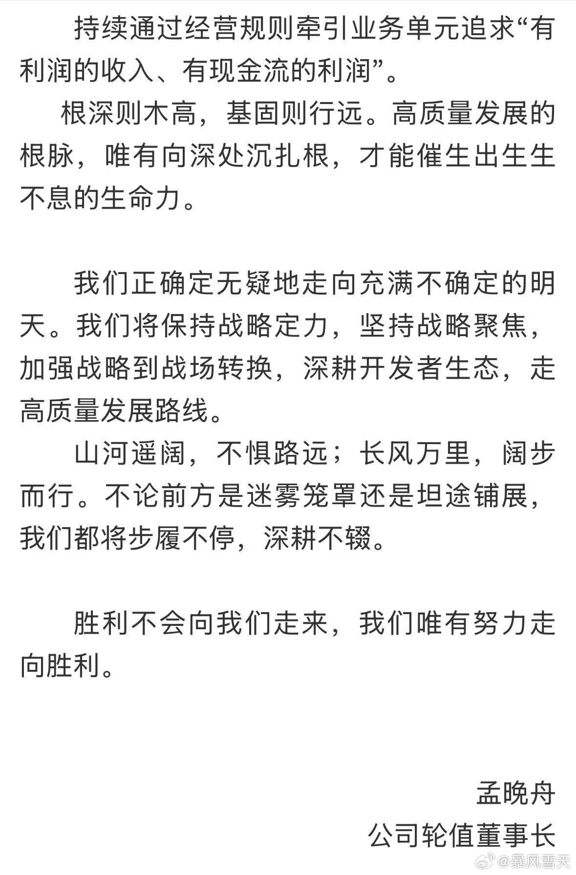 孟晚舟华为年报致辞谈战略聚焦
