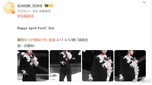 刘诗诗站姐发了张极刘诗诗站姐拍的张极刘诗诗站姐分享了舞台张极!期待帅哥的澳门演唱会,也期待刘诗诗新剧《千里江山图》早点播出!新娱