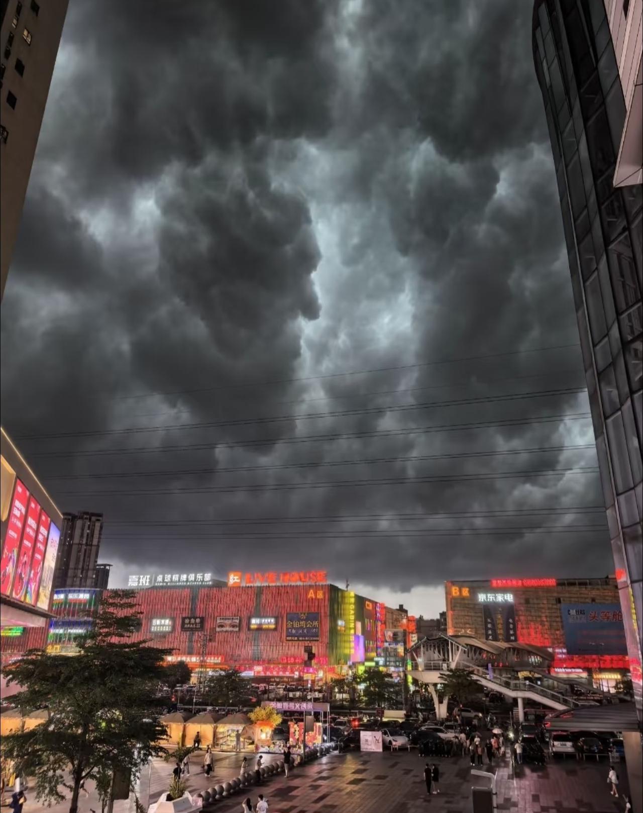 朋友拍的广州雷暴天气 看着也太吓人了 朋友昨天在广州旅游时 正好遇到了雷暴天气 据他所说前一秒还大太阳呢 结果没过一会儿乌云直接压顶 颇有黑云压城城欲摧的味道 白昼秒变黑夜, 同时伴随而来的还有轰隆隆的雷声 跟有人在头顶上放炮一样 随后就开始了下雨 而且雨大到像是有人在天上泼水一般 视线全部糊住 路边的树也被吹得疯狂摇晃 高架直接变“河道” 车在水里开像是在开船 总之非常吓人 只能说南方的雨季 真的是太夸张了 广东天气 雷暴 广东普降暴雨 广东天气异象 广东强降水预警 广州白云区暴雨 广州小雨天 南方雷暴