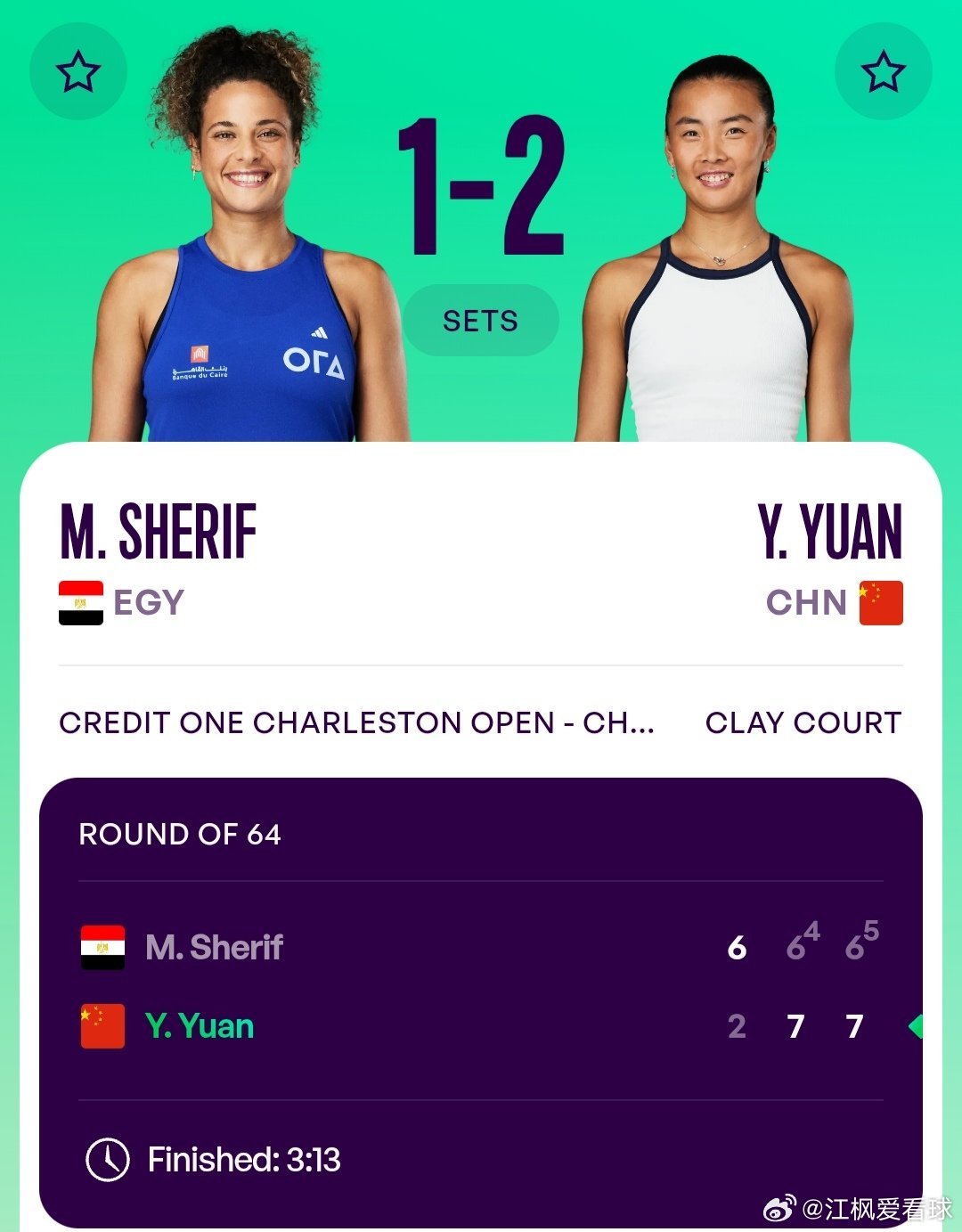 幸运落败者袁悦🇨🇳2-6/7-6(4)/7-6(5)逆转战胜谢里芙🇪🇬,晋级下一轮,恭喜袁悦!🎉🎉🎉