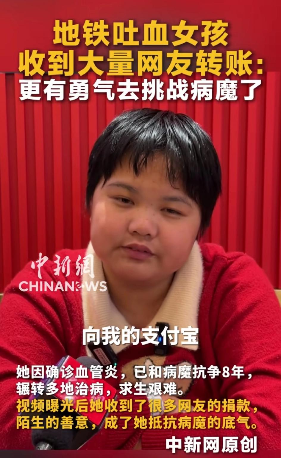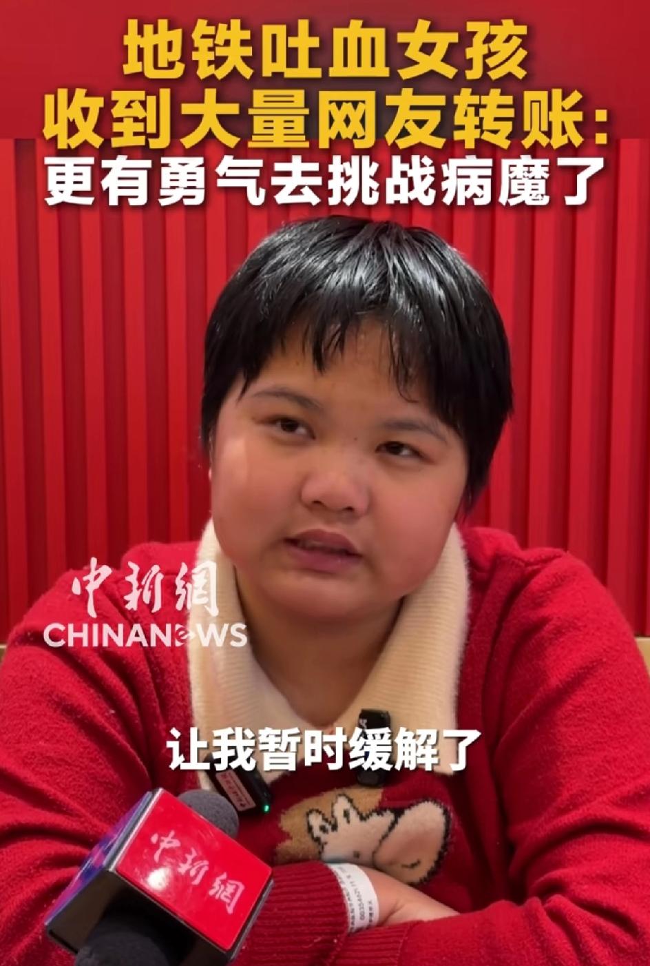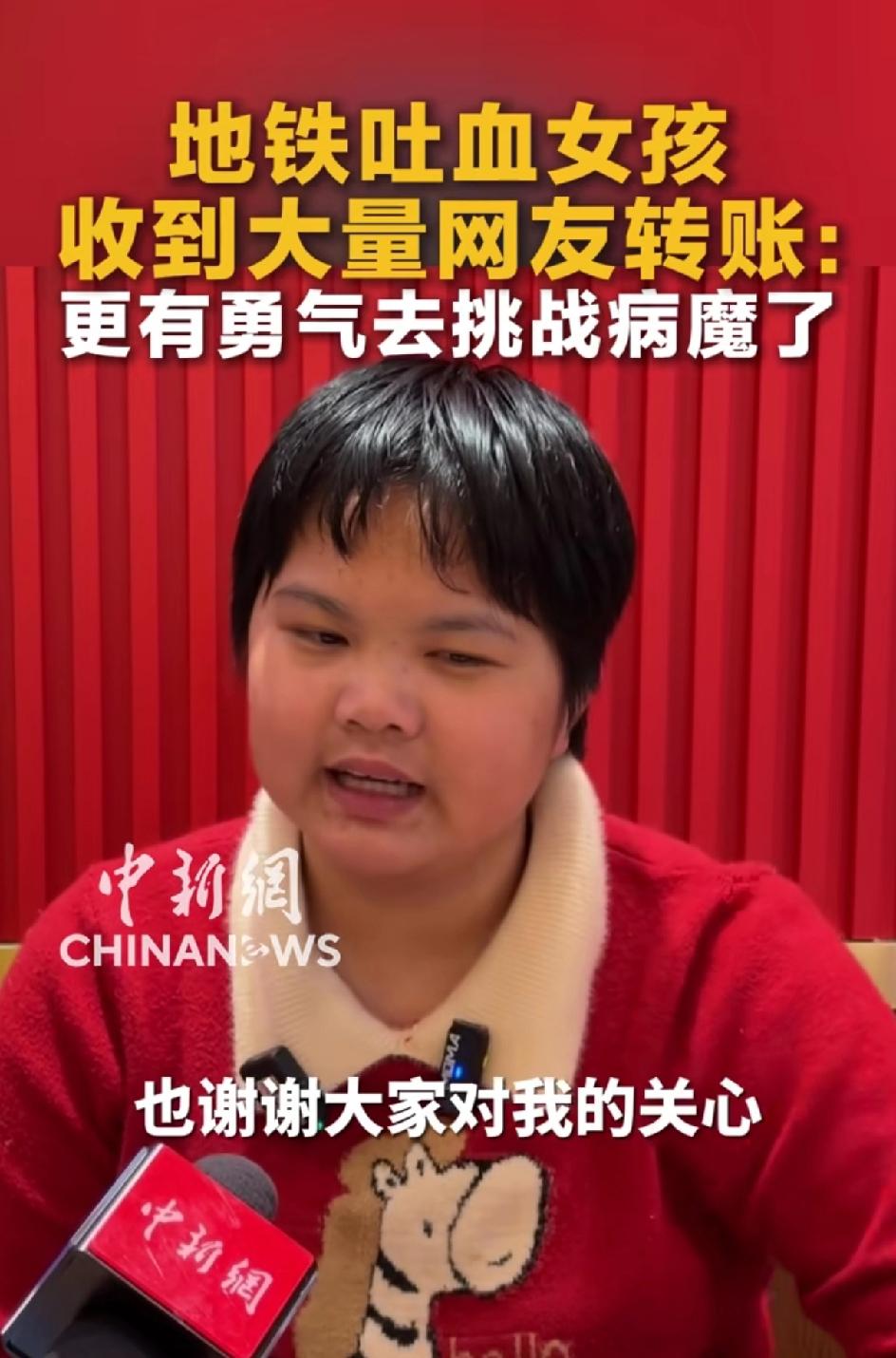 地铁上吐血的女孩收到网友的大量转账,更有勇气去挑战病魔了。这个女孩是不幸的,也是幸运的。因为她的无助被大家看到,并且引发了同情心,得到了帮助。一方面从精神上给予了她很大的鼓励,另一方面从物质上给了她很大的帮助,解决了很多实际问题,同时也让温暖和爱注入到她的心里。这些都是她战胜病魔的动力和勇气。那么多的善意,是社会大爱的证明。