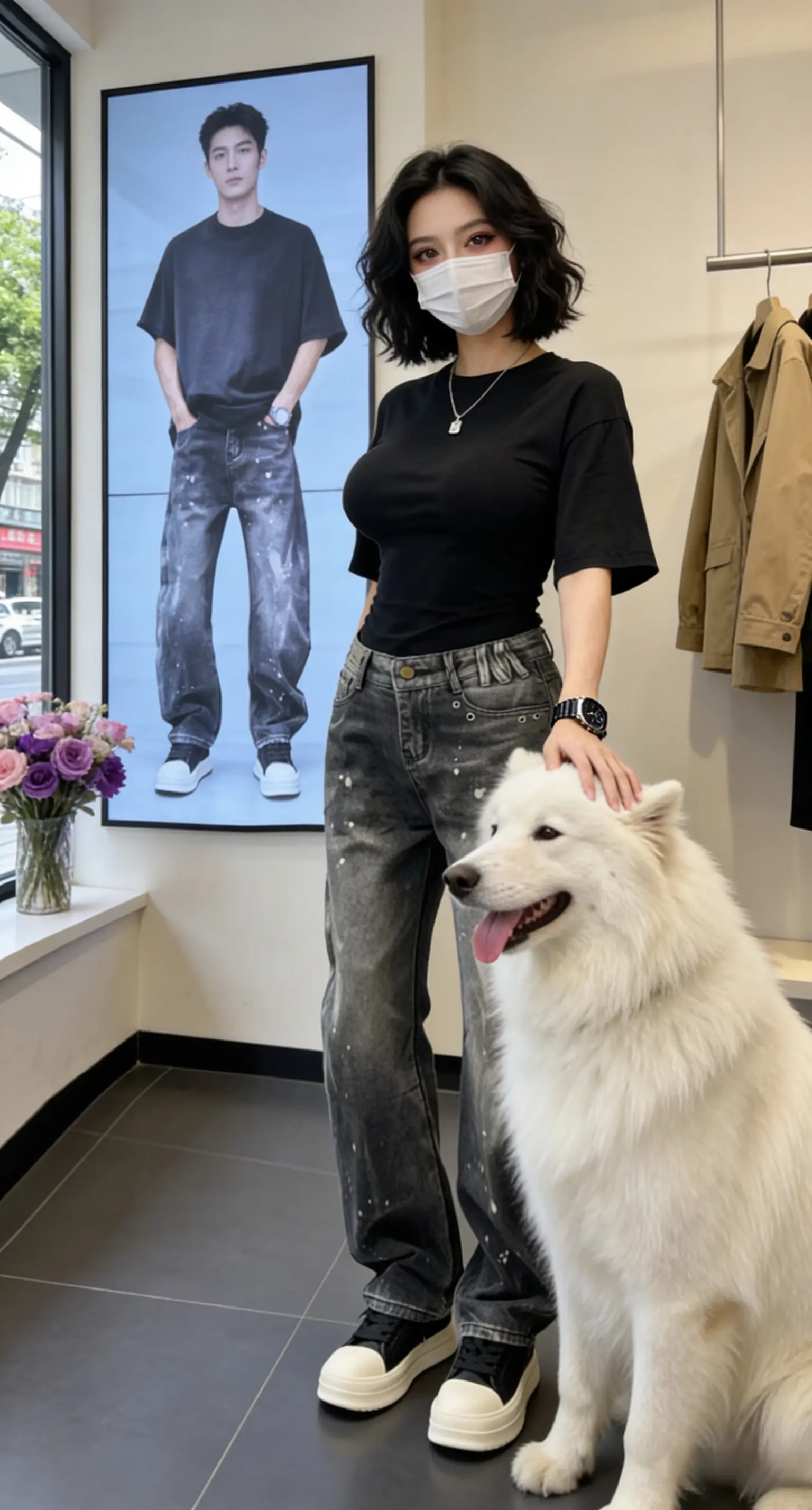 美式高街潮流复古痞帅弯刀牛仔裤水洗做旧宽松直筒垂感百搭阔腿裤