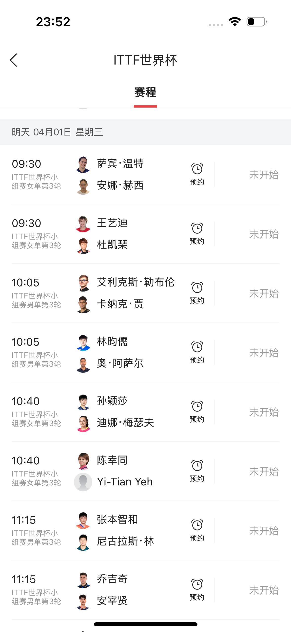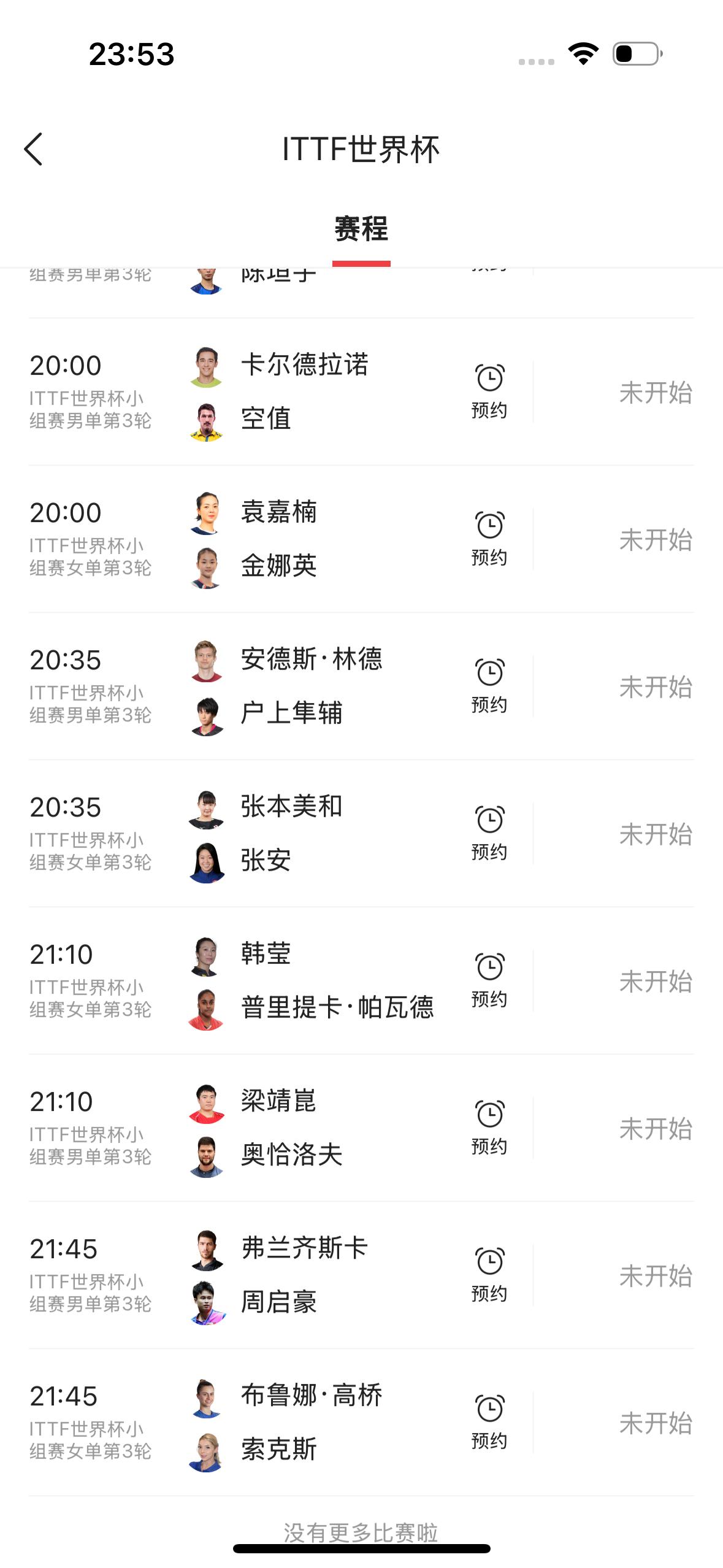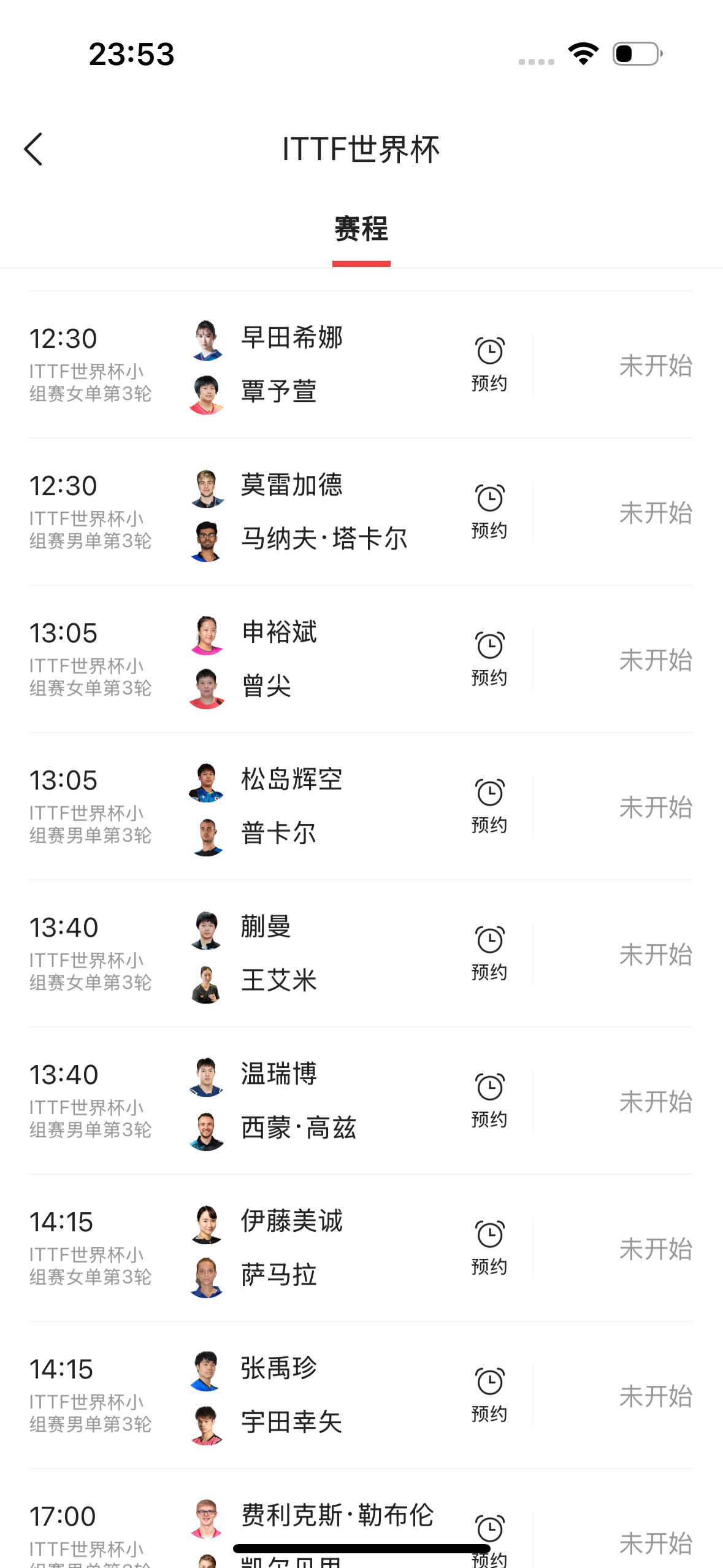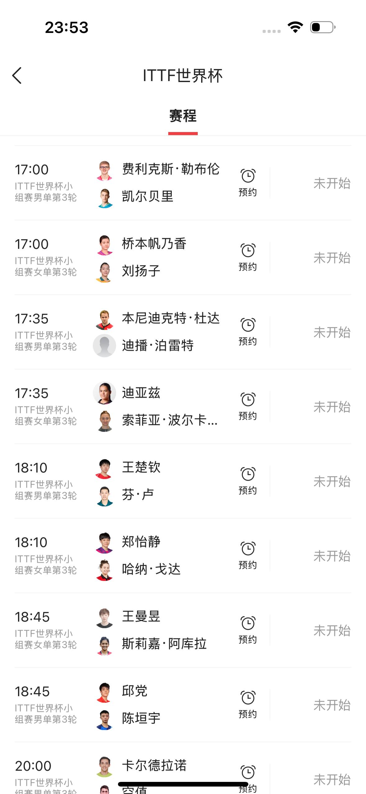 I TTF世界杯比赛已经进行到了第三轮比赛 今天我把男子、女子单打第三轮比赛的时间放在这里了,有喜欢乒乓球的球迷们可以根据自己喜欢的球员选择观看! 祝愿参加比赛的中国乒乓球选手全部胜利✌️!