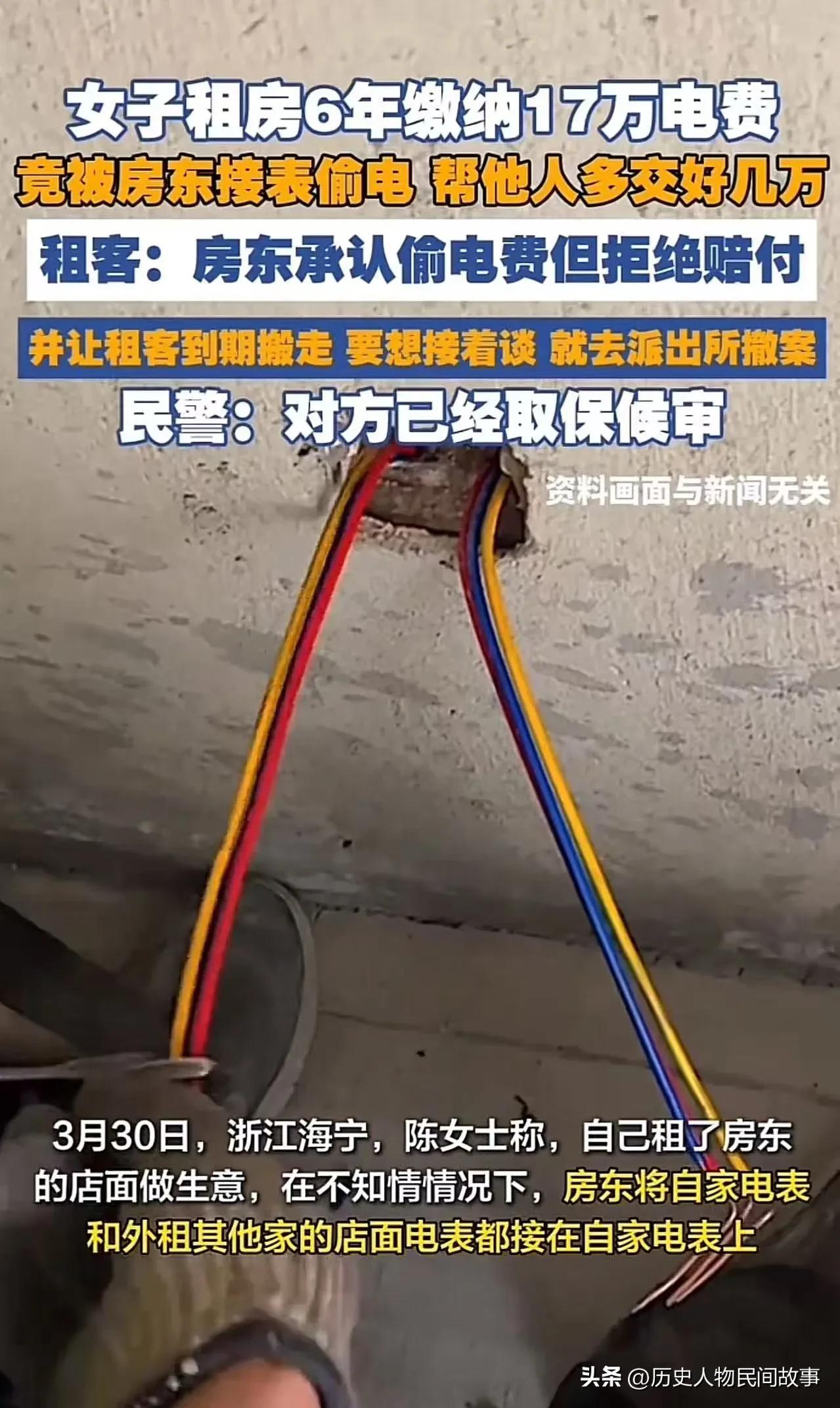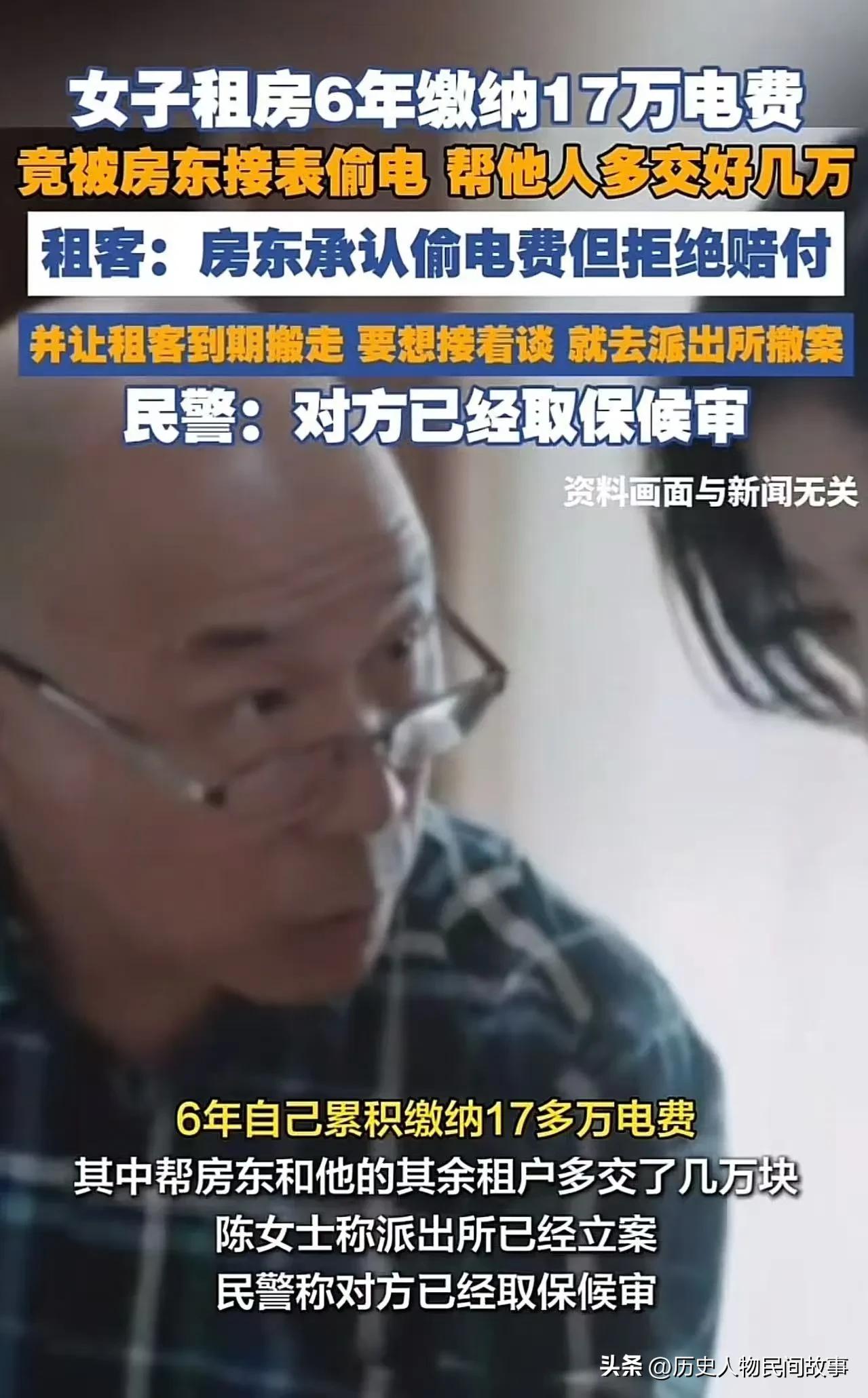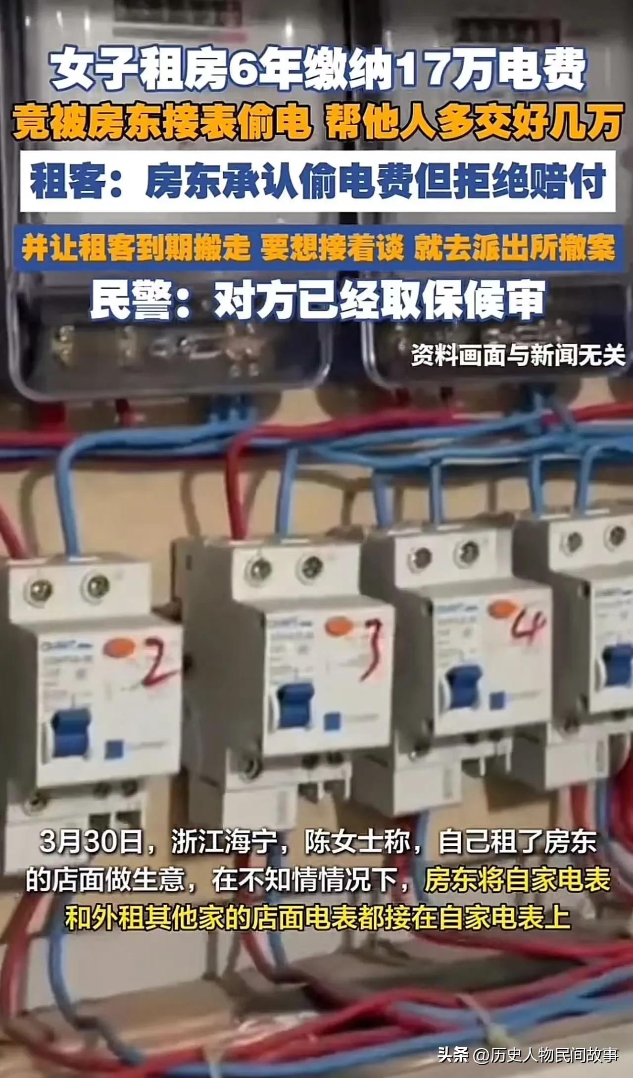 这件事确实非常恶劣,房东的行为已不是简单的民事纠纷,而是涉嫌刑事犯罪。从法律和维权角度,可以为这位女士(陈女士)梳理如下: 一、事件核心(浙江海宁,2026年3月) - 受害方:陈女士,租店铺经营6年,累计交电费17万余元。 - 侵权事实:房东私自将自家住房+其他租户的电线,都接到陈女士的电表上。 - 损失:6年间多交了数万元电费。 - 房东态度: - 承认偷电,但拒绝赔钱。 - 威胁:不撤案,到期就滚蛋。 - 警方处理:已按盗窃电能立案,房东被取保候审。 二、房东要承担什么法律责任? 1. 刑事责任(最严重) - 偷电属于盗窃公私财物。 - 浙江盗窃罪立案标准是2000元,此案数万元,属“数额较大”。 - 量刑:3年以下有期徒刑、拘役或管制,房东房客纠纷 房东的突发状况