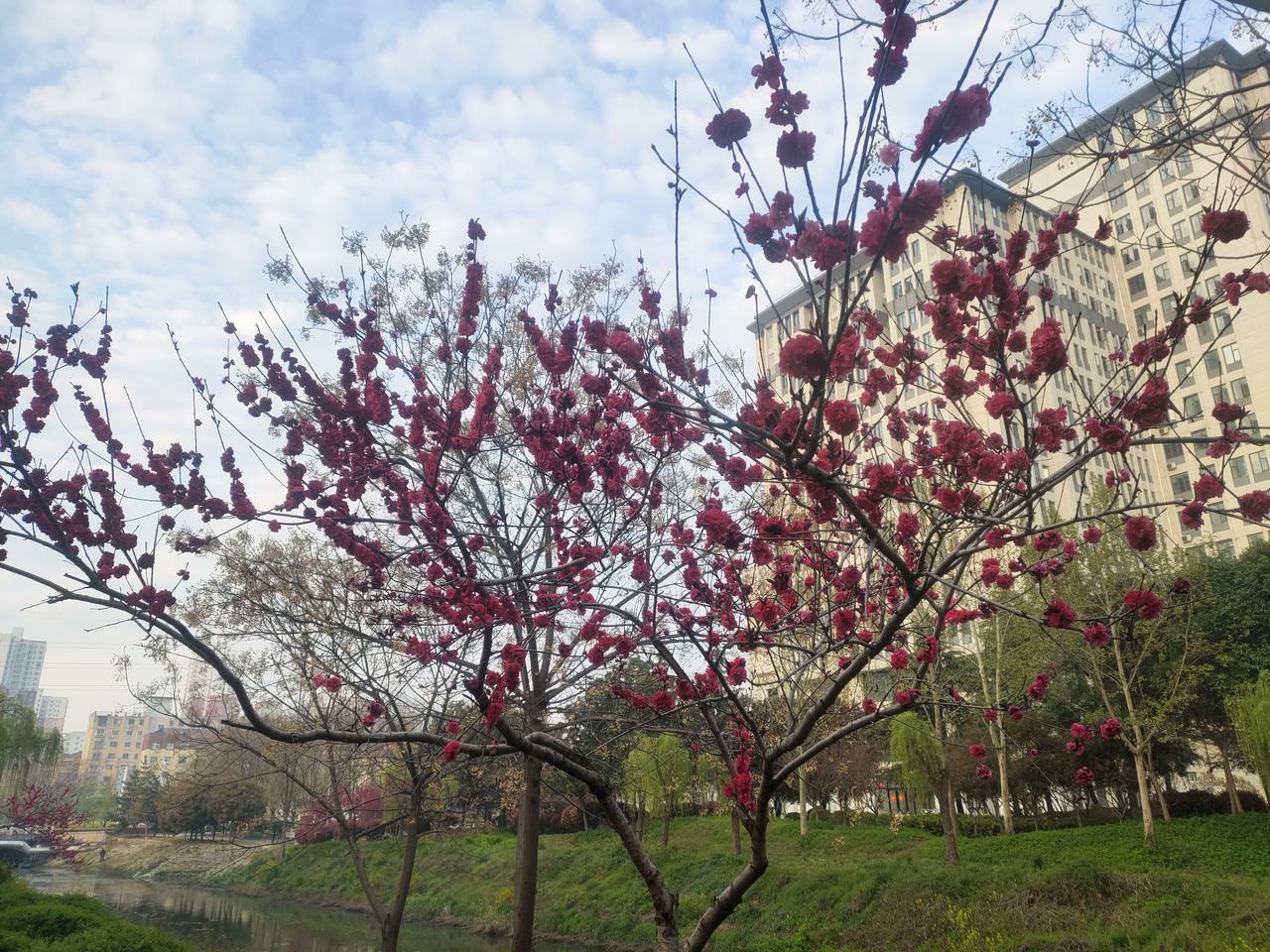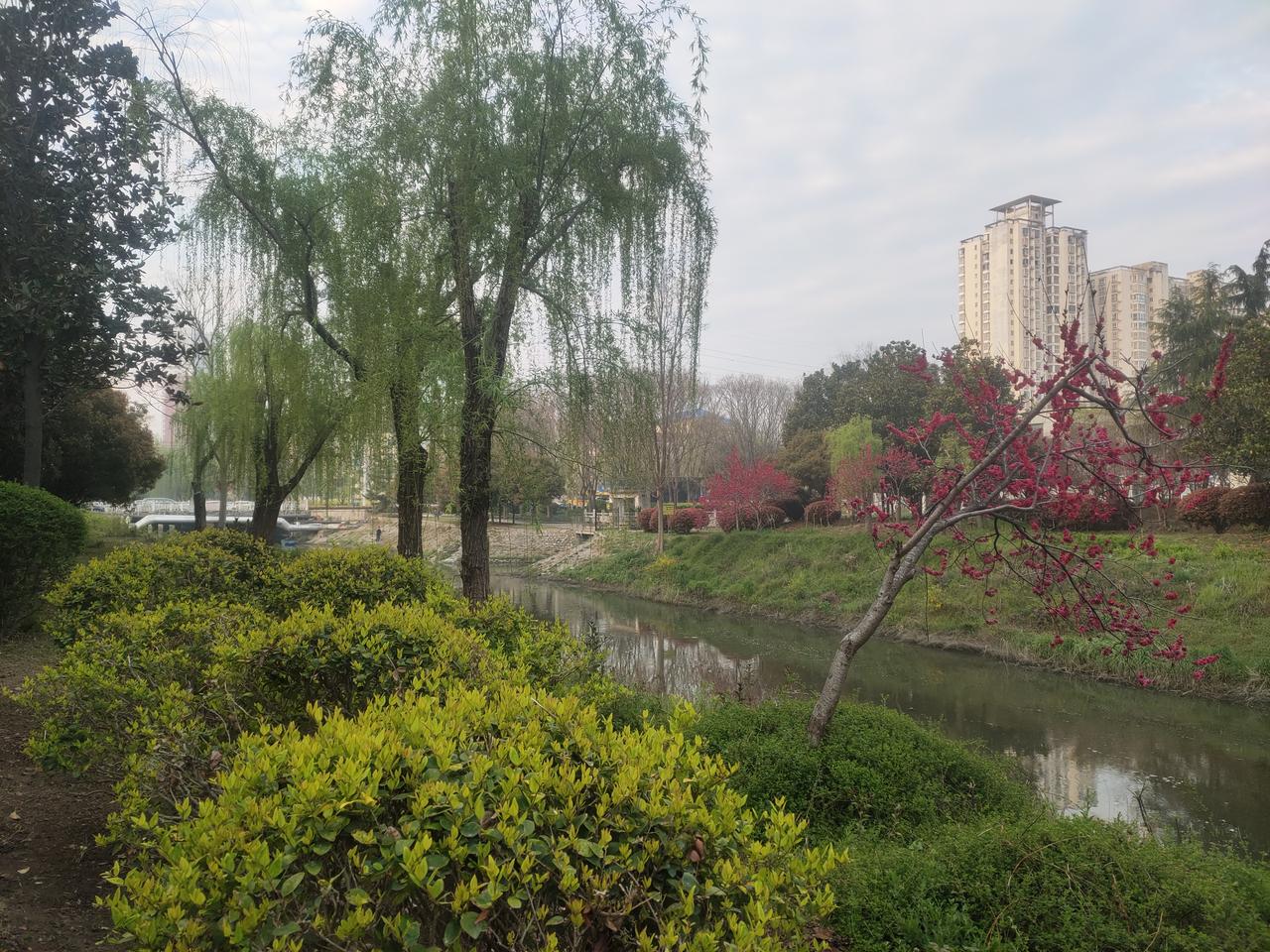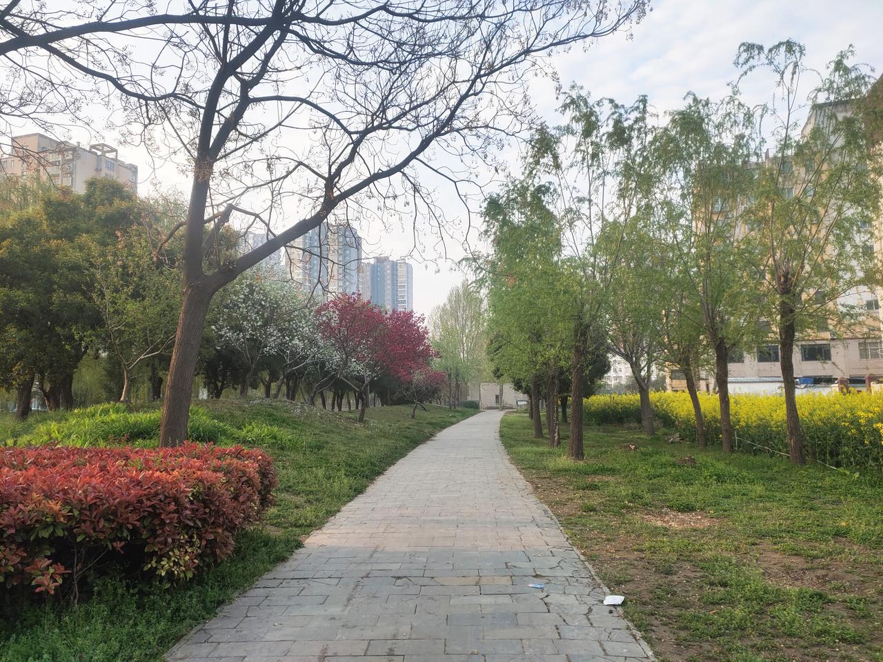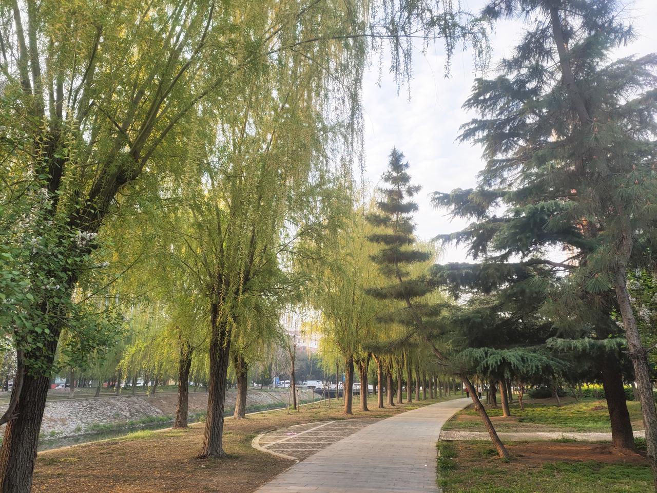 春日路景 绿树间漫步影像🌥春意满满,晨光熹微,花红柳绿,阳光洒满的林荫道,静谧而美好。早安,朋友们!🌹🤝☕️春天的绿化带