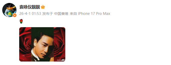 袁咏仪晒照悼念张国荣 袁咏仪晒照悼念张国荣,又是一年4月1日~