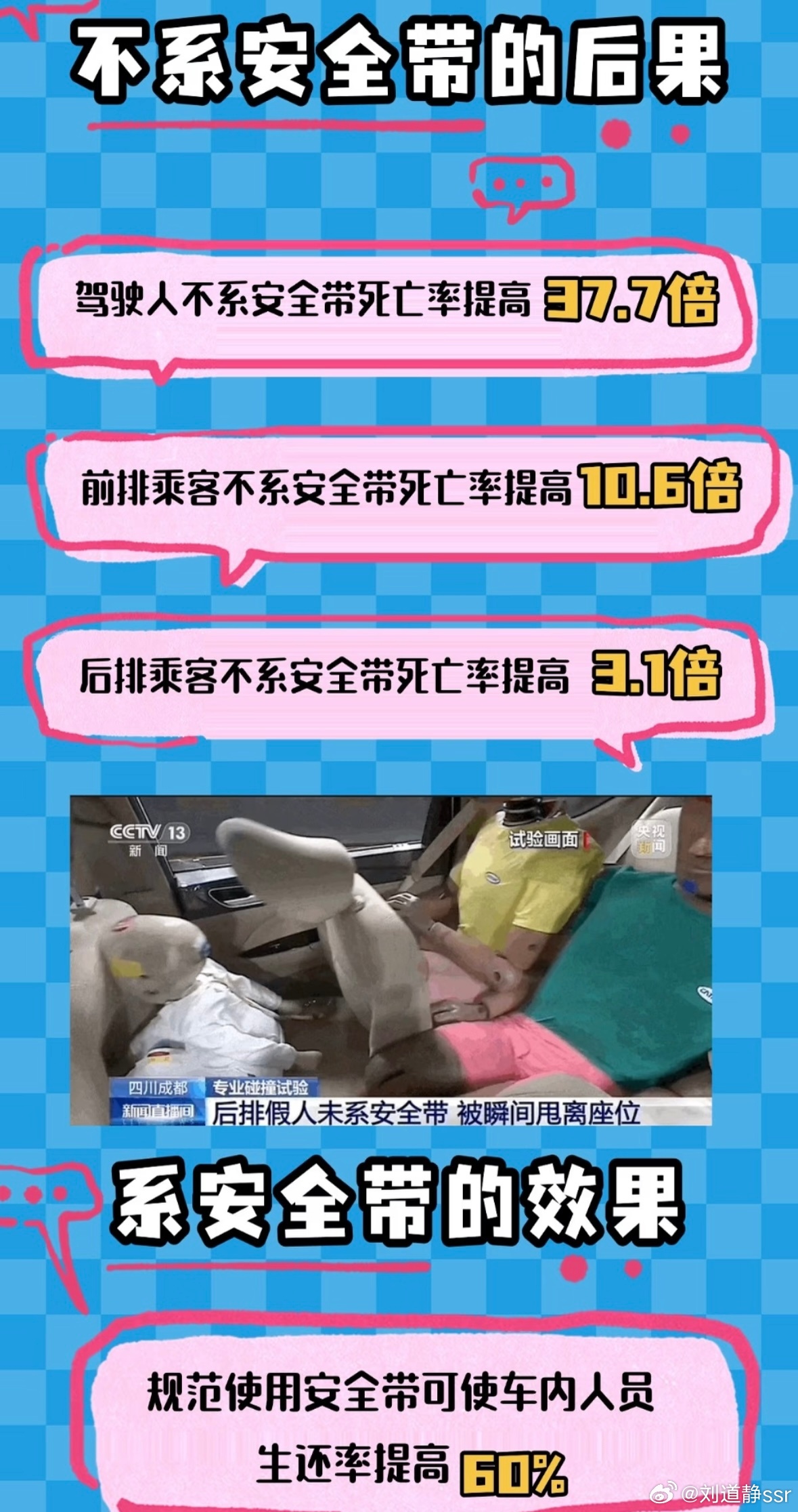 坐我车的原则就是:必须系安全带!无论前排后排,安全带是最基础最有效的防护,即使没人查也要系上不要有侥幸心理4月1日起全国严查后排未系安全带