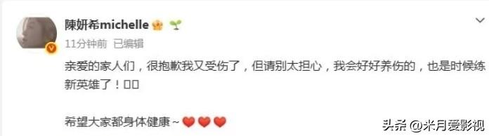 真的替陈妍希可惜!刚靠姐弟恋翻红,又意外受伤停工。 最近娱乐圈的瓜虽然多,但看到陈妍希受伤的消息,还是忍不住替她心疼。 之前她和周柯宇合作的那部姐弟恋剧《狙击蝴蝶》播出后口碑一直不错,很多人都夸她状态回春,演技自然,和年轻演员搭戏也毫无违和感,眼看着事业慢慢重回正轨,资源和热度都稳步上升,结果就在3月31号,突然传来了她受伤的消息。 当天陈妍希在社交平台发文,字里行间都透着无奈和遗憾,不少粉丝看到后都心里一紧。 后来大家才知道,她是在参加运动训练的时候不小心出了意外,直接确诊跟腱断裂,情况并不算轻。 好在手术已经顺利完成,医生也为她制定了详细的康复方案,只是后续需要长时间静养,不能过度劳累,更不能频繁奔波工作。 为了不影响身体恢复,她的工作室也及时发布通知,宣布暂停或者调整接下来的公开活动和节目录制。 其实跟腱断裂对艺人来说影响真的很大,不仅日常走路行动会受限,康复周期漫长,还会直接打乱原本规划好的工作节奏,好不容易积攒起来的热度和工作安排,很可能因为这次受伤被迫搁置。 不过让人意外又佩服的是,陈妍希本人心态特别好,并没有因为受伤而消沉。 她还特意晒出照片跟粉丝报平安,语气轻松又乐观,还开玩笑说“很抱歉又受伤了,大家别担心,我会好好养伤,也是时候练新英雄了”。 一句玩笑话,瞬间冲淡了受伤带来的沉重感,也让一直担心她的粉丝放下心来。 从工作室第一时间透明公开伤情,到陈妍希亲自出面安抚大家,整个过程都很暖心,也能看出来她一直很体贴粉丝和身边的人。 一直以来,陈妍希给人的印象都是温柔又乖巧的类型,笑起来甜甜的,特别有感染力,性格也不争不抢,在娱乐圈里算是很踏实低调的女演员。 之前她也有不少经典角色,只是后来事业发展不算特别顺利,直到这次和周柯宇的姐弟恋剧出圈,大家才重新看到她的魅力,不少人都期待她能抓住机会,带来更多好作品。 没想到事业刚有起色,就遭遇这样的意外,实在让人觉得遗憾。 其实对艺人来说,身体永远是革命的本钱,比起工作和热度,健康才是最重要的。 希望陈妍希能放下所有工作焦虑,安心养伤,好好配合康复治疗,不要着急复工。 也期待她早日痊愈,重新回到荧幕前,继续用温柔的笑容和优秀的作品,带给大家更多惊喜。 这么好的女孩子,值得一切顺利,也希望她之后都能平平安安,不再受伤。