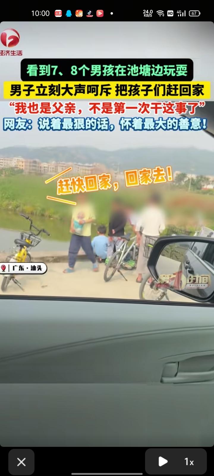 3月29日,广东汕头。男子看到七八个小孩在池塘边玩耍,立即呵斥他们回家。桥上没有护栏,发生意外掉水里就麻烦了,这是用最狠的话守护他人家庭。当事人徐先生称,我也是父亲,不是第一次干这种事了,孩子家长以为他们是去读书。