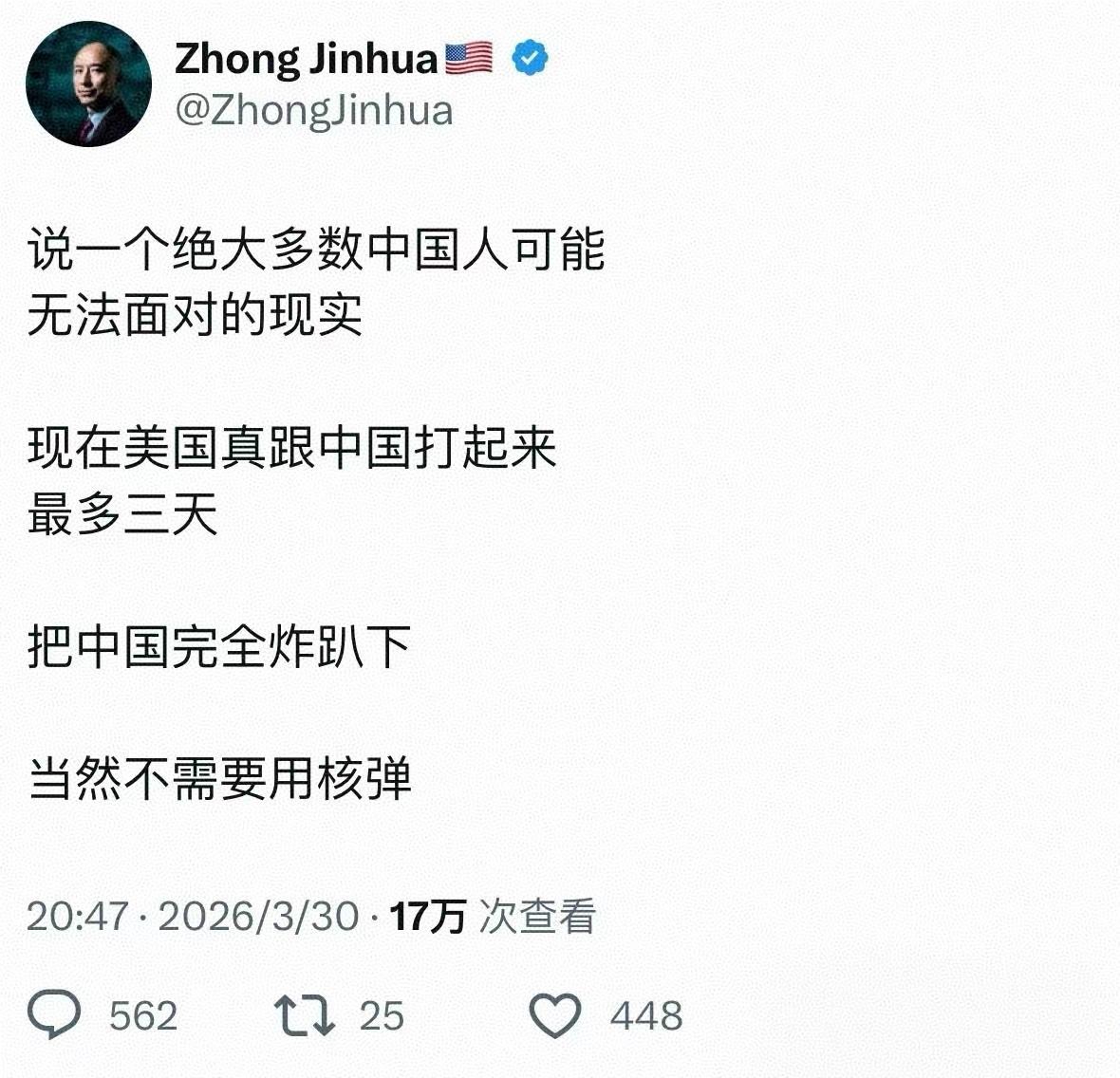 大殖子,看来你是真不了解美国啊! 美国究竟有没有能力把中国炸趴下?这我不知道,但我知道他们在炸之前,肯定会先把你抓进集中营。 白瞎你在美国待那么久,竟然一点都不了解美国,你真是蠢得彻底啊!