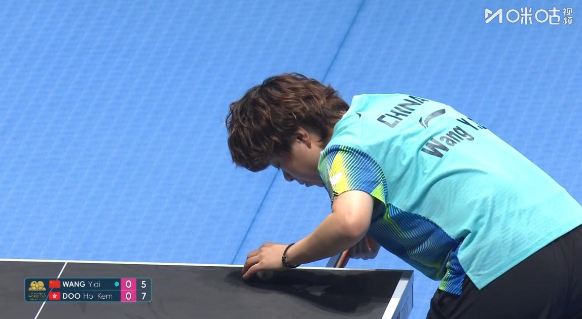 情况不对,王艺迪开局打的太别扭, 看来杜凯琹准备非常充分, 一个劲的打大迪正手位, 大迪的反手优势根本发挥不出来, 第一局大迪2-4落后, 局中杜凯琹持续打正手位, 大迪的无谓失误增多, 大迪也尽量利用落点来调整到反手位, 将比分追到8:9后, 关键球杜凯琹加强了搏杀速度, 连拿2分, 11:8,杜凯琹先下一城, 于子洋教练也是提醒大迪, 多打几拍相持, 不要着急打反手