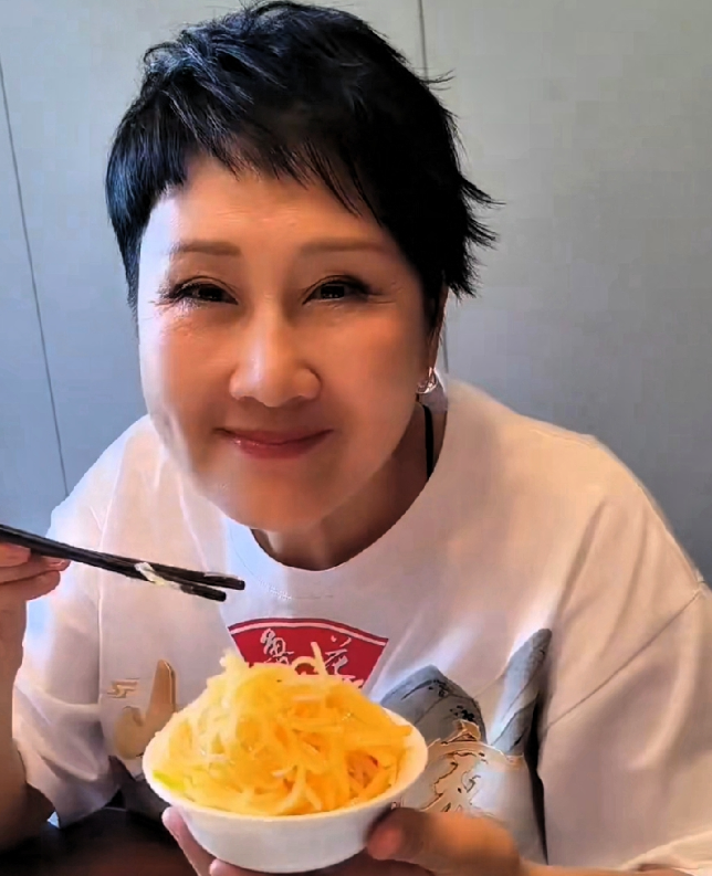 张凯丽称自己是个特别爱吃土豆丝的人 一盘子炒土豆丝,她能吃下半盘。她吃土豆丝有个习惯,会往炒好的土豆丝里倒好多醋,然后搅拌着吃。她说这种吃法会让人吃惊,但她天生就爱吃土豆和醋,只有这样吃才觉得舒服,或许她身体里缺这两种食材吧