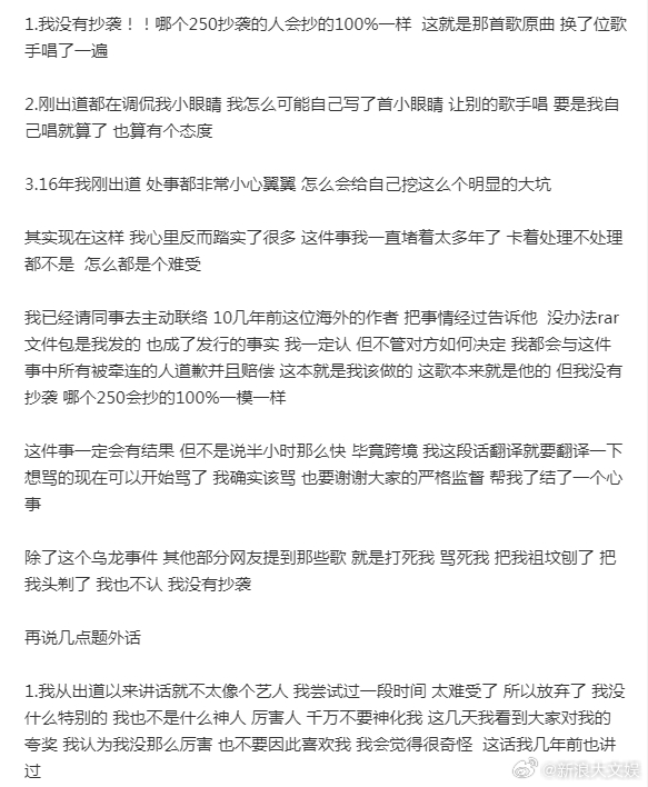李荣浩 我怎么可能自己写了首小眼睛李荣浩 别去找单依纯粉丝 刚刚,李荣浩发文回应抄袭质疑。