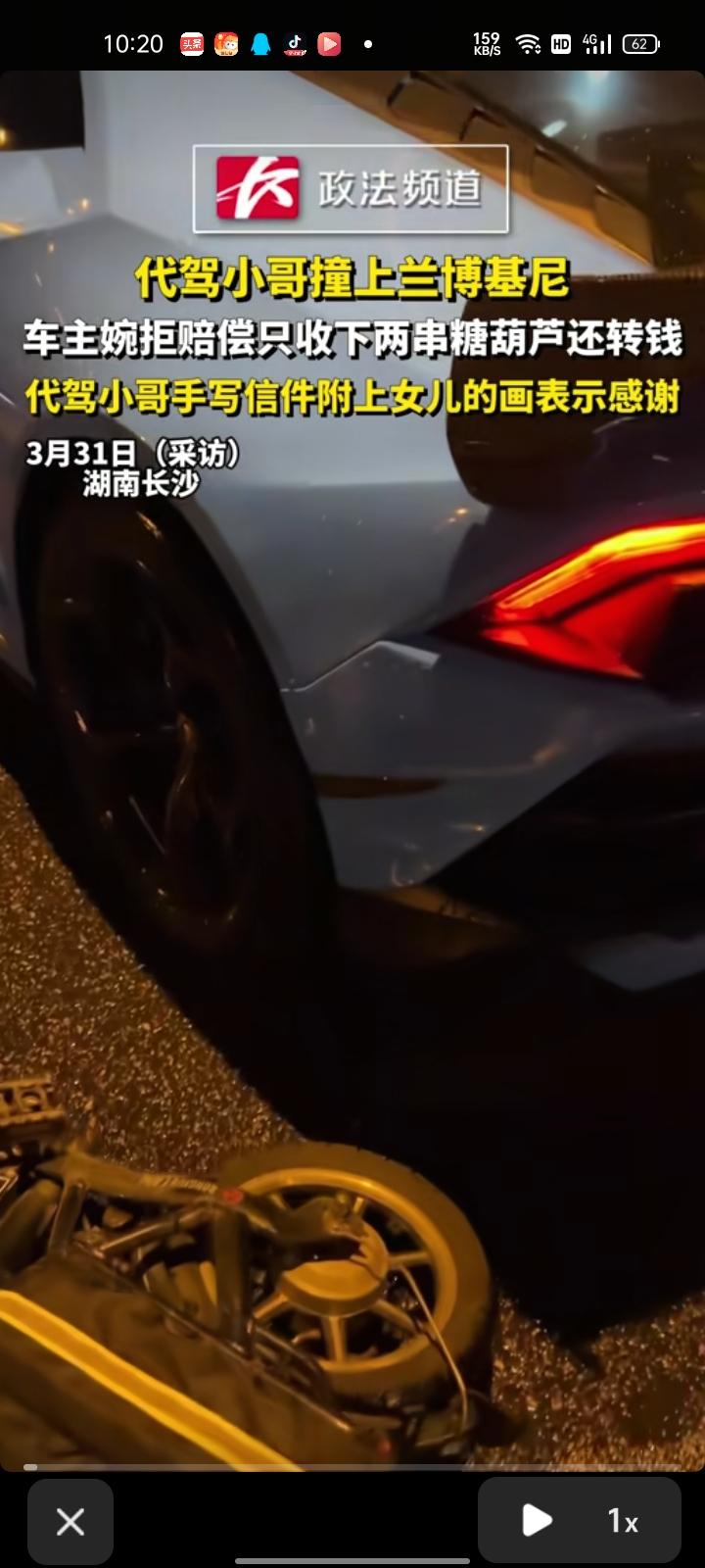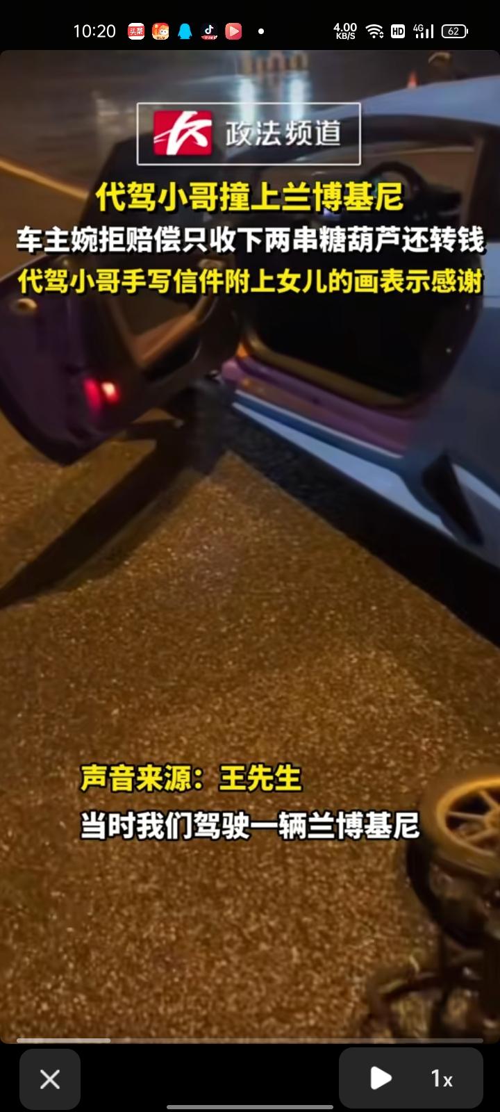 3月28日,潍坊安丘市。王先生称,深夜和朋友开着朋友的兰博基尼,把车停在路边下车买东西时,被一位代驾小哥骑车侧面剐蹭,考虑到代驾小哥有单子就先让他走了,代驾小哥给了他们两串糖葫芦。 随后,代驾小哥家了微信联系方式,微信转账的赔偿他们没收,只因体谅代驾小哥风里来雨里去,很辛苦。几天后,代驾小哥看到这条视频,就手写了一封信,配上他女儿的一幅画,感到特别暖心,后续会和代驾小哥和他女儿一起去看比赛。