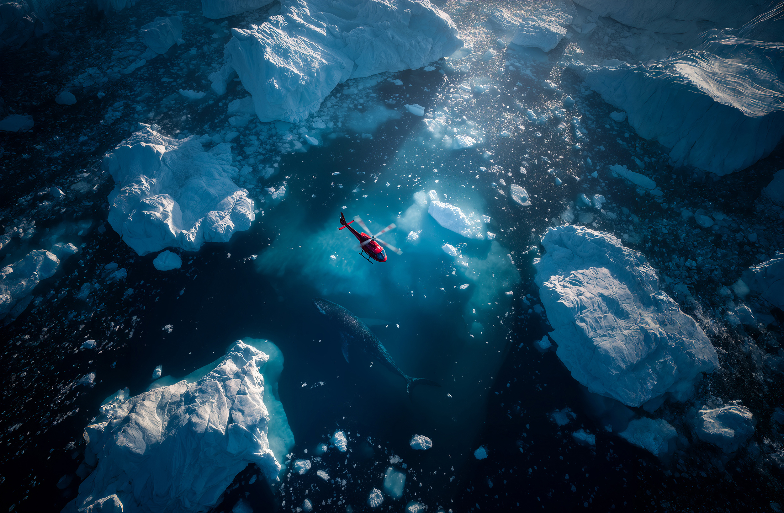 冰海之上,红色掠过,鲸影潜行。真正震撼人心的,不是声量,而是在辽阔之中,那一点生命回响。