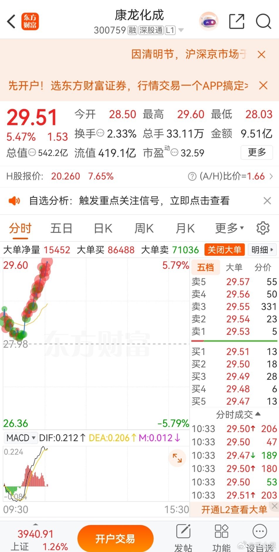 昨日早盘分享的$康龙化成 sz300759$ 恭喜上车的家人们!