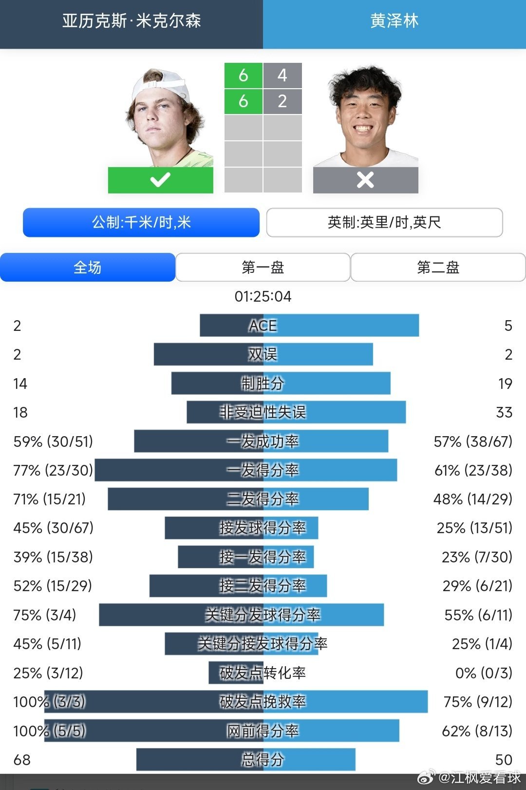 黄泽林🇭🇰4-6/2-6不敌米克尔森🇺🇸,无缘晋级。下一站加油!