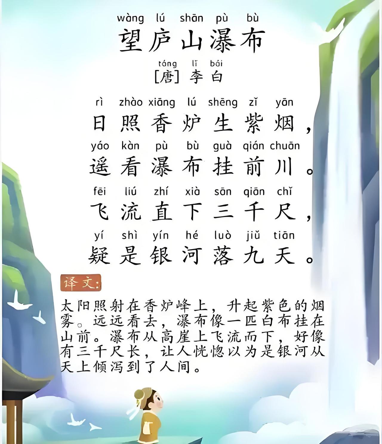 李白的《望庐山瀑布》原来有两首。不过,庐山瀑布与这首诗描述一点儿也不符合,因为庐