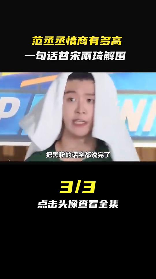 范丞丞情商有多高?一句话替宋雨琦解围。 当年宋雨琦因为玩游戏太拼被网友指责不尊重杨颖,后来她不拼命了反而被观众吐槽划水。因此每次宋雨琦在玩游戏时,范丞丞直接贴脸开大,把黑粉的话全都说完了。 你不赢观众又得说你划水。 阴阳怪气,咱永远不能做一划水的人。 在某节目中大家一起在高级餐厅吃牛排,所有人都熟练地使用刀叉,唯独范丞丞直接用筷子吃牛排,就连鹅肝是什么都不知道,甚至因为吃剩菜汤被同为富二代的马伯骞疯狂嘲讽。 你这也太拼了,这蒜蓉空心菜的水。 当服务员在上菜时不小心打碎了餐具,其他明星都没有任何反应,唯独范丞丞一直在温柔地安慰她。 没事。 我们就是一个搞笑节目,你给我们节目添彩。 果然你永远可以相信范丞丞的人品。
