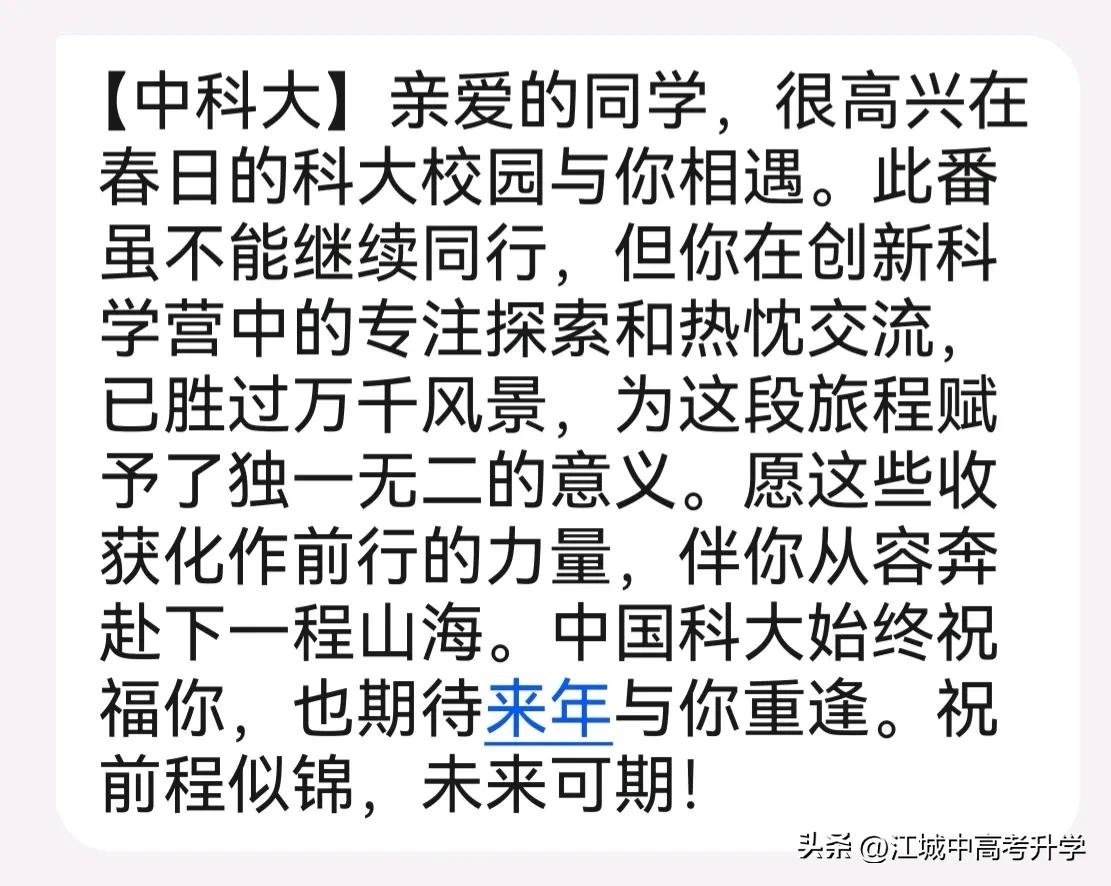 中科大少创班营一考试分数线出炉, 93分进入下一阶段科学营二, 84分获得2026高考资格, 由于今年营一的试卷普遍偏难, 因此今年的营一的分数线比往年低7分, 同时中科大收紧高考资格, 今年定的高考分数线要比往年更高, 去年高考分数线是80分。 对于营一失败的同学, 中科大也发了安慰短信, 这一操作在入围考的时候也同样有, 也给了很多考试失败的同学更多的力量。 中科大少班由来已久, 在考试组织方面都非常的成熟和有经验, 各项工作都有条不紊的推进着, 优秀是一种习惯, 人也是,学校也是。