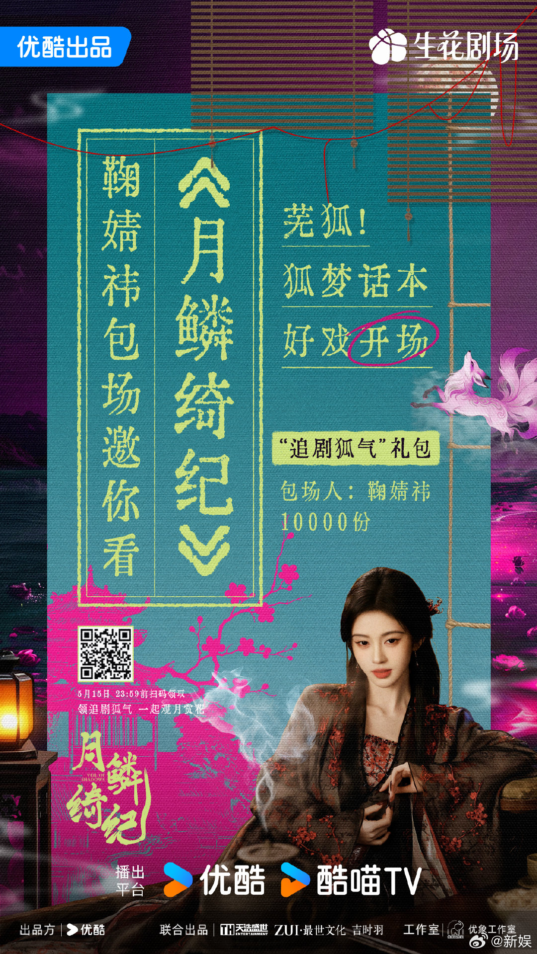 鞠婧祎月鳞绮纪云包场 鞠婧祎云包场月鳞绮纪鞠婧祎给《月鳞绮纪》的云包场是10000份,再加座621~目前一共10621场,请把鞠婧祎大气打在公屏上~拼手速就不知道能否拼得动在座的各位了!期待小萌狐露芜衣~月鳞绮纪开播