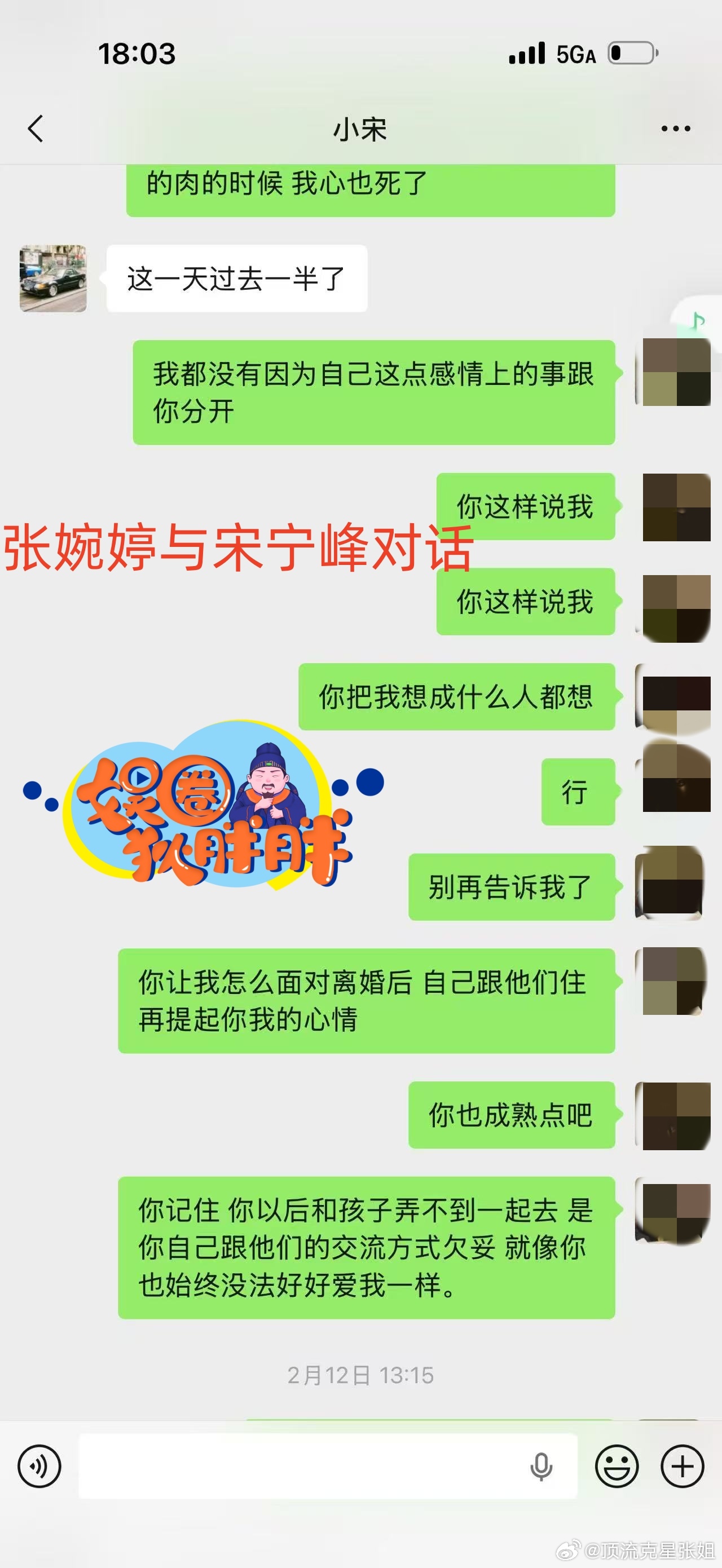 据悉,2月12日,在宋宁峰提出离婚后,张婉婷向其发送多条长篇文字,试图挽留这段早已变质的婚姻,字里行间满是卑微与不甘,尽显 “密密麻麻是我的自尊” 的无奈。