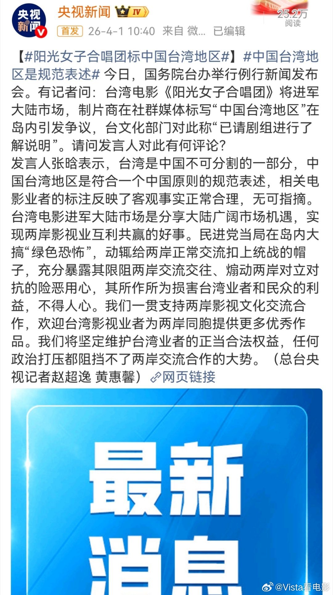 《阳光女子合唱团》被网bao竟然是因为在宣传时候正确使用了“中国台湾地区”的标注??说对了反而要被骂?这是什么道理