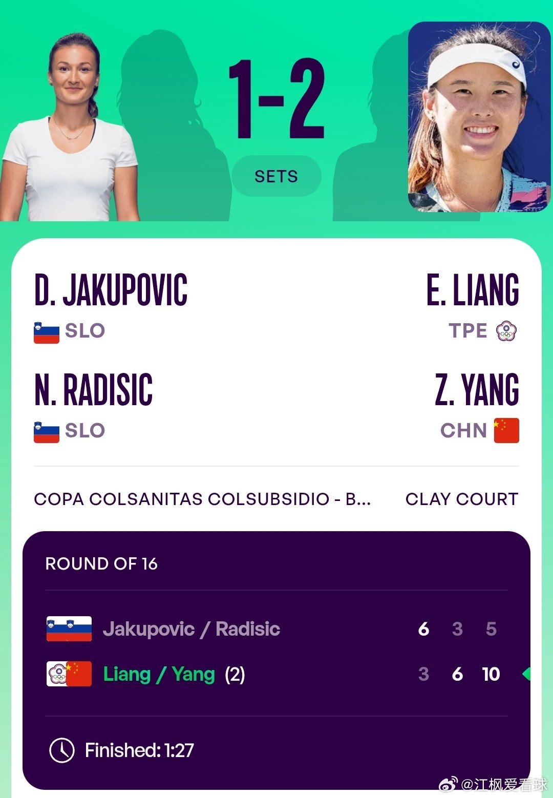 海峡组合梁恩硕/杨钊煊🇨🇳3-6/6-3/10-5逆转战胜雅库波维奇🇸🇮/拉迪西奇🇸🇮,晋级8强,恭喜梁恩硕/杨钊煊!🎉🎉🎉
