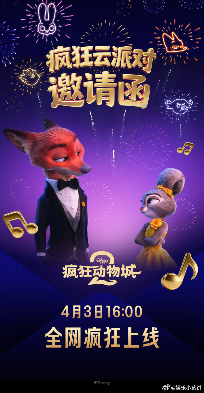 谁还没收到朱迪尼克的邀请 全网近千万人预约!《疯狂动物城2》4.3网播上线,朱迪尼克亲自发邀请。新冒险+经典名场面,歌舞不停欢乐不断,还有独家幕后,在家实现刷片自由。