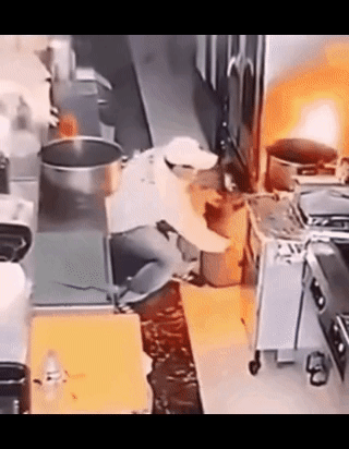 这厨师反应非常快 动作干脆利落 生死关头冷静不慌乱 有勇有谋 拯救了一家店 点赞
