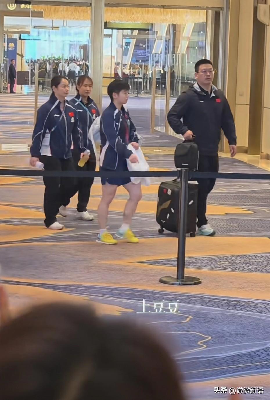 莎莎笑起来真好看,看来今天心情不错。 今天是澳门世界杯的第三个比赛日,国乒女队孙颖莎、王艺迪、陈幸同都是取得两连胜,从小组赛中出线,恭喜她们,其他人接下来的比赛继续加油哦。 今天莎莎是3-0赢了梅谢芙,局间的时候莎莎和马导沟通的也多,这样看莎莎真的瘦了很多,有莎莎比赛的场次确实现场看比赛的人会多一些呢,莎莎收拾好背包,和马琳教练边边复盘,看得出来小女孩今天很开心,喜欢看莎莎笑,明天开始就是淘汰赛了,莎莎继续加油哦。 赛后采访结束后,莎莎和佳佳、朱梓予、翔哥一起回去了,莎莎站在翔哥的身边,真的好小一只,在成都封训的十多天里,任姐和翔哥对莎莎很严格,莎莎自己也说瘦了,瘦了后的莎莎在比赛时跑动会更灵活。 今天小杨也去看了莎莎的比赛,每次大赛小杨都会去,他对莎莎也是真的很好。一会儿就是覃予萱和早田希娜的比赛了,覃予萱也要加油哦!