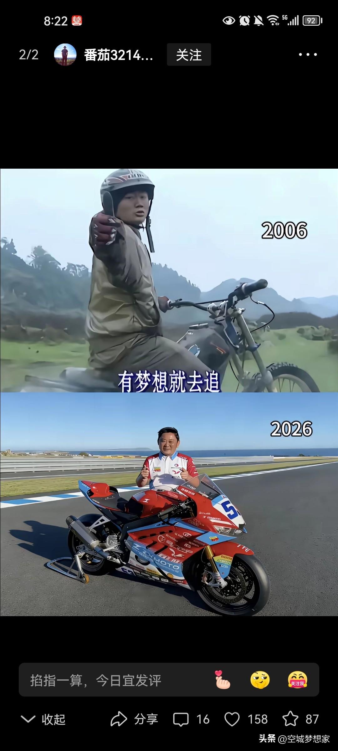 人到中年才懂:张雪20年摩托路,每一步都藏着不辜负 刷到网上曝光的张雪一笔笔借款账单,再看这两天拿下分站赛冠军的新闻,作为人到中年、摸爬滚打半生的过来人,心里满是感慨。 从手写账本里一笔笔几万、十几万的借款,到赛场上捧起冠军奖杯的高光,张雪这20年的摩托路,从来都不是凭空的逆袭。在他还没闯出名堂、为了心爱的摩托事业砸钱打拼的日子里,是亲戚、朋友、合作伙伴愿意把真金白银拿出来,赌他的热爱,信他的人品,托着他的梦想往前走。 人到中年才明白,哪有什么一夜成名,不过是百炼成钢。所谓的成功,从来不是运气砸中了谁,而是有人为了一份热爱,死磕了20年,更没辜负每一份托举他的信任。张雪能走到今天,靠的从来不是天赋,是把每一笔借款都记在心里、一一还清的靠谱,是在无数个难以为继的日子里,依然没放弃摩托的坚守。 人这一辈子,最难得的不是顺境时的锦上添花,而是困境中的雪中送炭,更是拿到结果后,永远记得谁在你难时拉过你一把。张雪的20年,给我们每个中年人上了一课:做人,永远要对得起别人的信任;做事,永远要守住自己的初心。 人到中年,见多了人情冷暖,才更懂这份双向奔赴的珍贵。张雪的冠军,是他自己用20年坚守拼出来的,更是无数人用善意和信任托起来的。愿我们都能在人生路上,守住热爱,不负信任,不负时光。 互动话题:如果是你的朋友开口问你借钱,你会借给他吗?评论区聊聊你的看法吧。 张雪 摩托 中年感悟 人情冷暖 人生感悟 坚守20年张雪摩托车 张雪语录 人民日报评张雪:奋斗是逆天改命密码