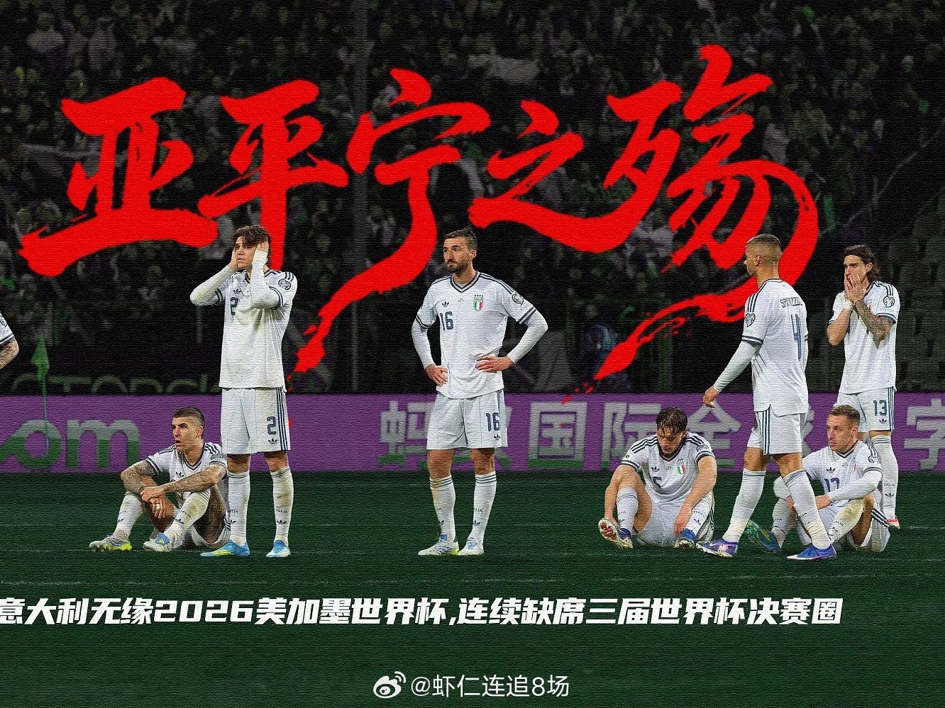 对于意大利足球而言,这无疑是一个苦涩的夜晚。这是他们连续第三次无缘世界杯。