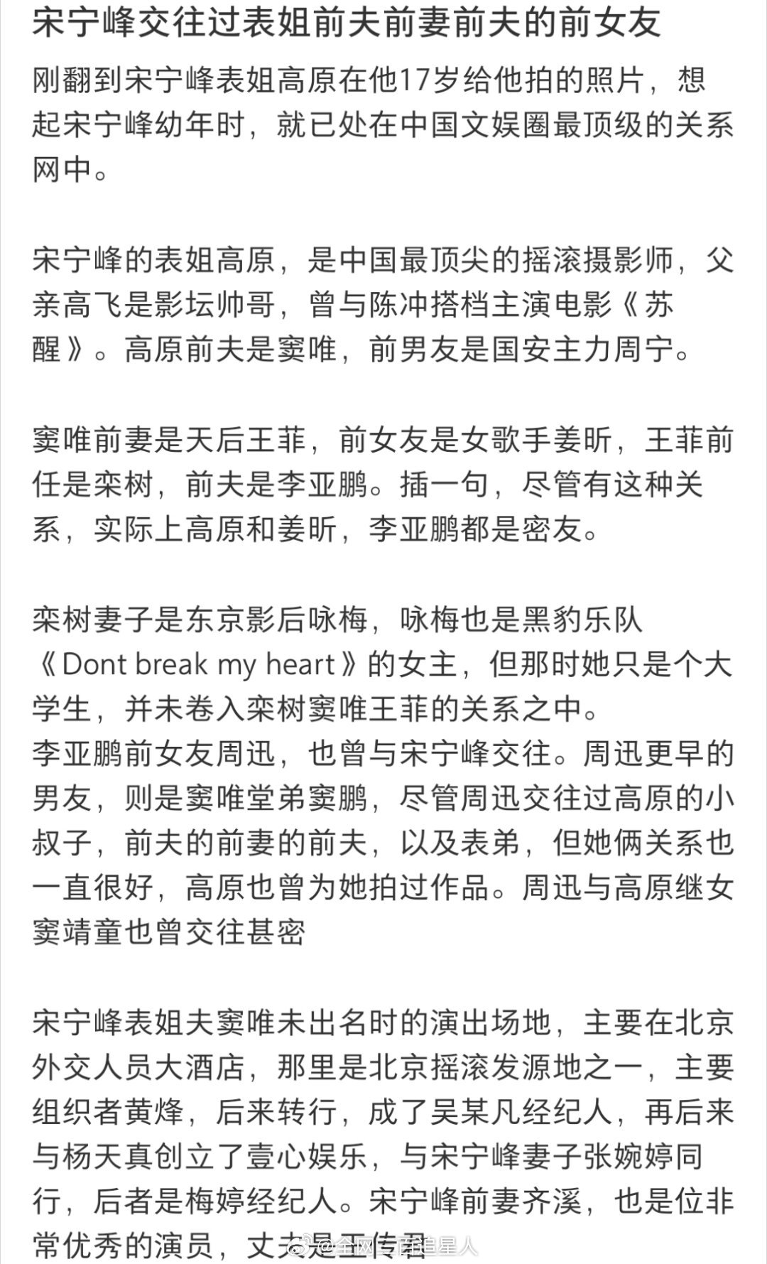 “宋宁峰交往过表姐前夫前妻前夫的前女友”宋宁峰回应婚内出轨