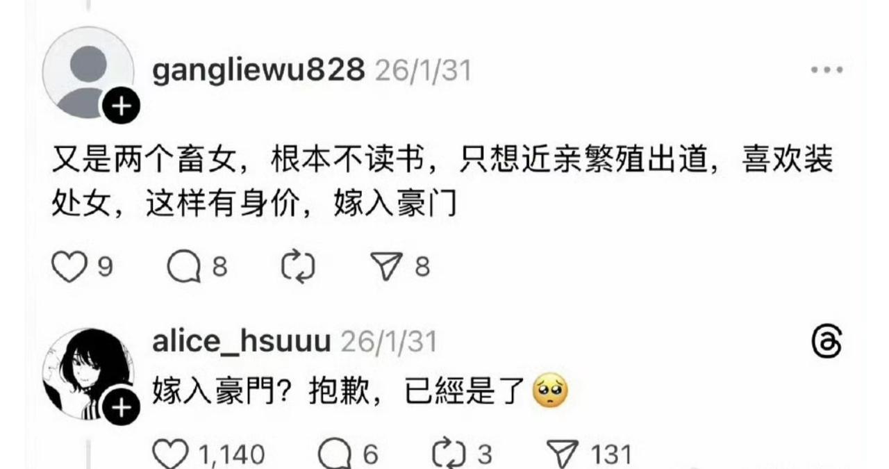 小S三个女儿,个个都了不得,“护姐狂魔”许老三正式上线, 自称已经是豪门。 2月初,小S的两个大女儿Elly和Lily合体,登上了台湾某杂志封面,杂志用了气质超群,“复刻ASOS”等字眼吹捧这对姐妹花,疑似在借大小S宣传,不知是不是想像当年大小S一样合体出道。 谁都知道,小S两个大女儿,这几年虽没有正式出道,但十分会博眼球,特别是老二Lily,几乎是媒体常客,十分会营销自己。 有网友在评论区留言,用侮辱性的言语抨击Elly和Lily不读书,只会装清纯想嫁入豪门,言语十分不友好。 小S三女儿Alice看到后,不客气地回击:豪门?抱歉,已经是了。护姐姿态十分飒爽。 许老三2012年出生,今年刚刚14岁,正是敢说敢做的青春期,“护姐狂魔”的气质是稳稳的,也赢得不少网友好感。 但有一说一,在台湾,许家真的是豪门吗? 别的不说,豪门会让未成年的孩子不好好读书,天天活在社交平台上,不是晒性感照,就是在哪里吃喝玩乐吗?特别是许老二,这些年就没有见她穿过一件正经衣服,这难道是豪门家风豪放,对下一代没有要求? 如若是这样,试问将来又会有哪一个豪门会娶这样的女孩做儿媳? 许家是不是豪门咱不知道,但从小S两个大女儿来看,家风不怎样是真的。