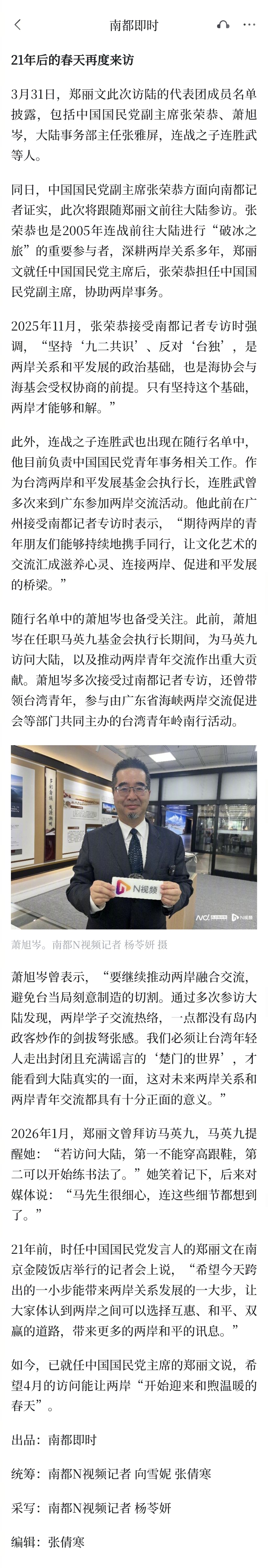 #郑丽文访问大陆随行团名单#【跨越21年的缘分:“和煦温暖春天”展望下的郑丽文大