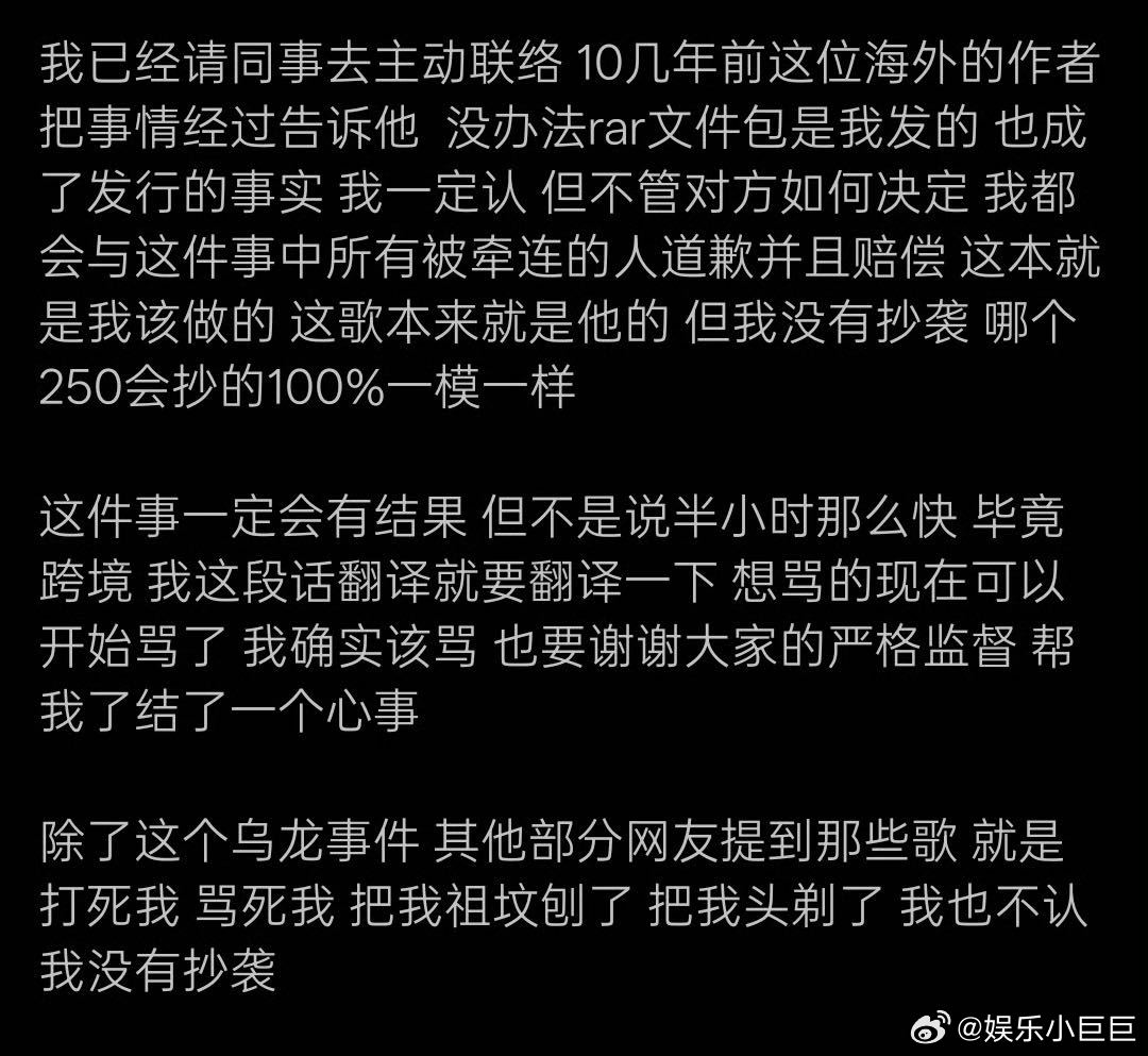李荣浩 哪个250会抄得一模一样 希望大家能多给原创音乐人一些信任,不要任由谣言扩散,伤害认真做音乐的人
