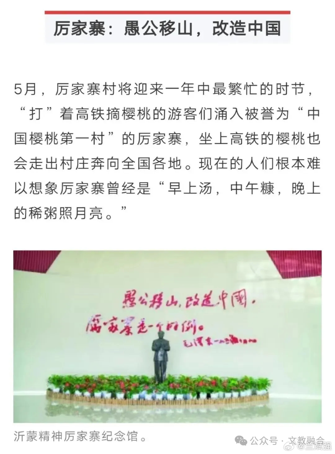 “愚公移山,改造中国,厉家寨是一个好例。”