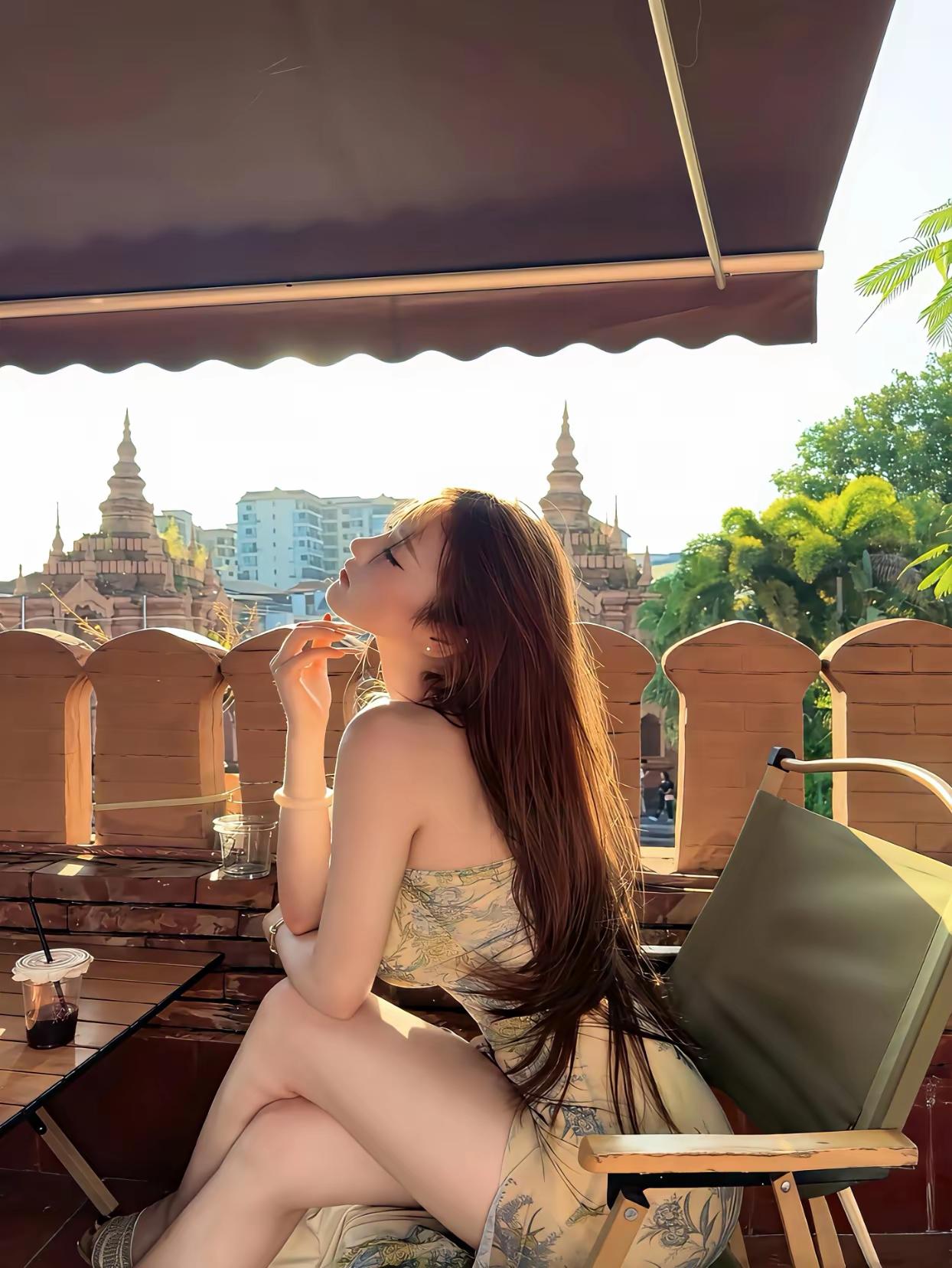 核心亮点:全程用日落黄金逆光勾勒出发丝与轮廓,自带柔光氛围感,取景西双版纳傣式露台,以佛塔、热带绿植打造出浓郁的异域度假感;抹胸印花修身裙既显身材又适配场景,搭配松弛自然的托腮、靠栏、仰坐等姿势,结合特写、全景等丰富构图,既突出人物又交代环境,整套照片风格统一,完美呈现出慵懒惬意的度假状态,出片感拉满。 日光为笔,风为墨,在露台写下悠闲的诗。斜倚栏杆,看金塔在阳光下闪着温柔的光,热带绿植送来阵阵清凉。冰美式的苦,混着阳光的甜,漫过整个午后。这一刻,时间仿佛静止,所有的喧嚣都被隔绝在外,只剩我与阳光,共度这慵懒又治愈的时光。