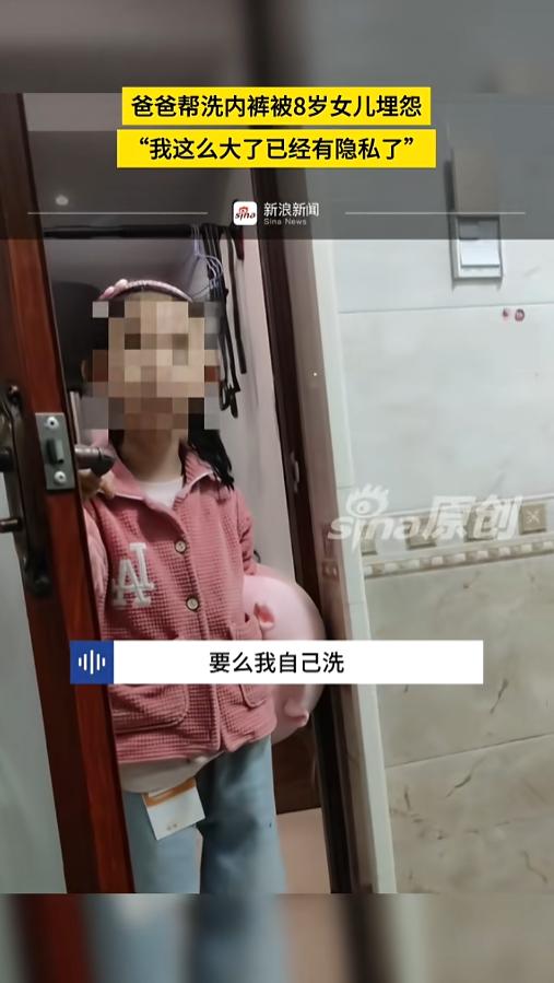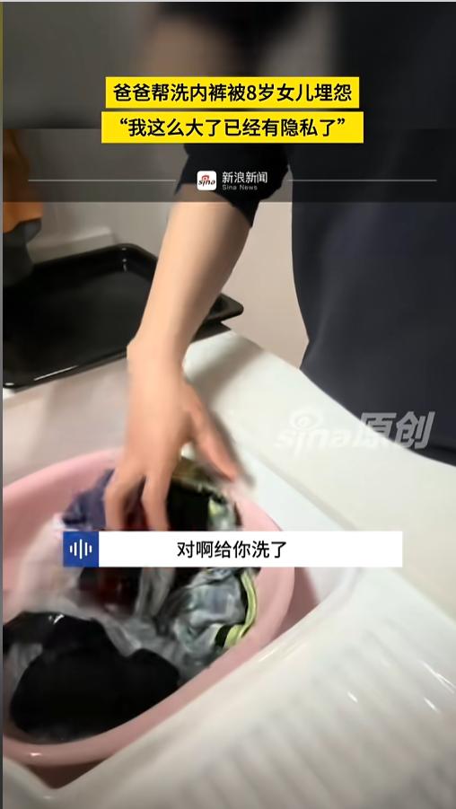 “孩子不是谁的附属品!”近日,河南,一位8岁的小女孩跟爸爸吵了起来。爸爸好心把女儿的内裤洗了,可孩子却觉得,这涉及到自己的隐私,应该自己洗或者让妈妈洗。而且自己也多次跟跟爸爸提过,可他就是不当回事!网友:须知女大避父! 女孩是爸爸的小棉袄,这话说的是不错,但孩子大了,当爸的也要注意分寸。孩子也有自己的想法,有自己的隐私,家长应该尊重,不能任意侵害。 据媒体3月31日报道,事发当日,爸爸正在屋里洗衣服,女儿突然敲门,得到允许后,进门就是一句质问“你是不是把我内裤给洗了?”爸爸不以为意,说“对啊,我给你洗了”。 可女儿却不这么觉得,她说自己已经8岁了,有自己的隐私了。这些隐私部位的衣服,要么自己洗,要么妈妈帮忙洗。让爸爸不要再插手了。“整天给我洗,我都害羞了!” 爸爸在全程中都是哦哦的敷衍着,说自己洗的时候没在意,显然是没把孩子的话放在心上。最后孩子说完下不为例就离开了。女儿走了之后,爸爸还嘀咕了一句,“嗯,小不点事儿还不少嘞!” 网友看后表示,其实孩子做的很对,她知道自己大了,知道有男女之分,也知道一些事得自己干了,这是件好事啊!当爸的怎么能不在乎,甚至还有点瞧不起呢?这时候更应该顺势鼓励孩子,让她真的记住,真的做到才是! 信息来源:《爸爸帮洗内裤被8岁女儿埋怨“我这么大了已经有隐私了”》新浪新闻