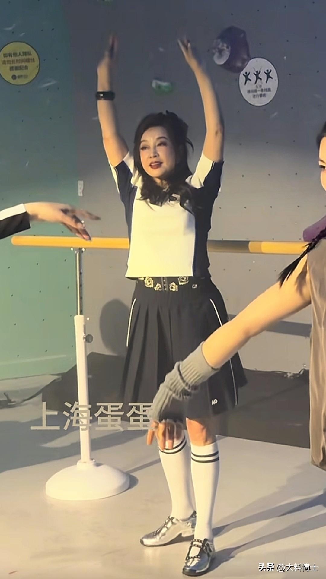 75岁刘晓庆跳女团舞,高马尾+百褶裙学院风,这位同学怎么样? 近日,75岁刘晓庆跳女团舞的画面在网络上引发热议。视频中,她身着黑白拼色Polo衫、百褶短裙,搭配白袜与银色玛丽珍鞋,一身标准学院风穿搭活力满满,与实际年龄形成强烈反差,“衣着年龄差”话题迅速出圈。 画面里,刘晓庆扎着高马尾,肢体舒展,抬手、摆胯动作利落,完全看不出已是古稀之年。 但细看之下,岁月痕迹仍难完全遮掩,面部状态与灵动舞姿、少女穿搭形成鲜明对比,也让网友对“年龄感”的讨论愈发激烈。 有人称赞刘晓庆心态年轻,敢于挑战女团舞,穿搭减龄有活力,是“活到老美到老”的典范;也有网友认为,强行少女风穿搭与年龄违和,不如选择符合年龄的优雅造型。