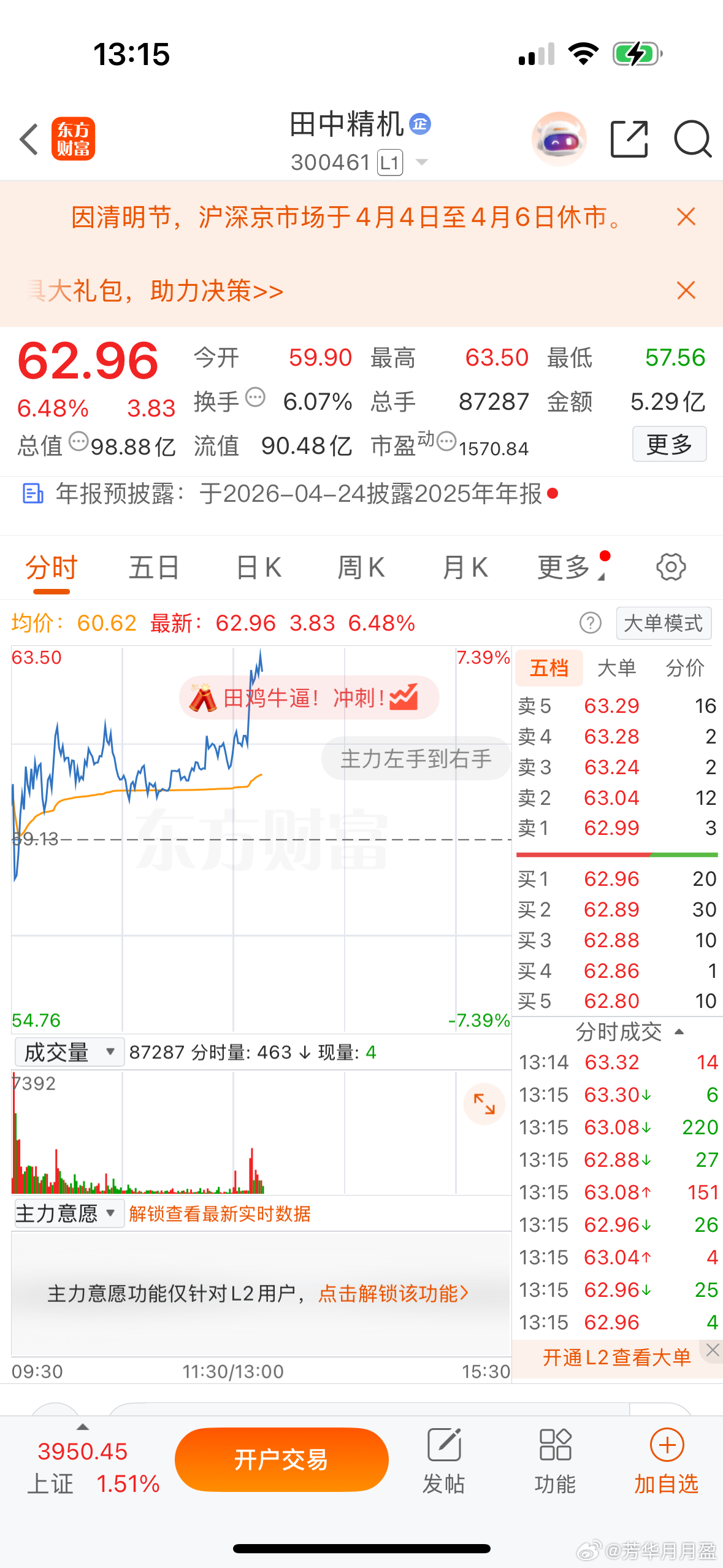 震荡期只能找找短线个股机会,不管是芳华前天开盘前提示的$田中精机 sz300461$ ,还是昨天提示V+会员的$永鼎股份 sh600105$ ,实则都给了出手机会。其实不会选股操作的爱粉,只要有粉丝私信,芳华都会毫无保留分享选股,操作经验。芳华剧本