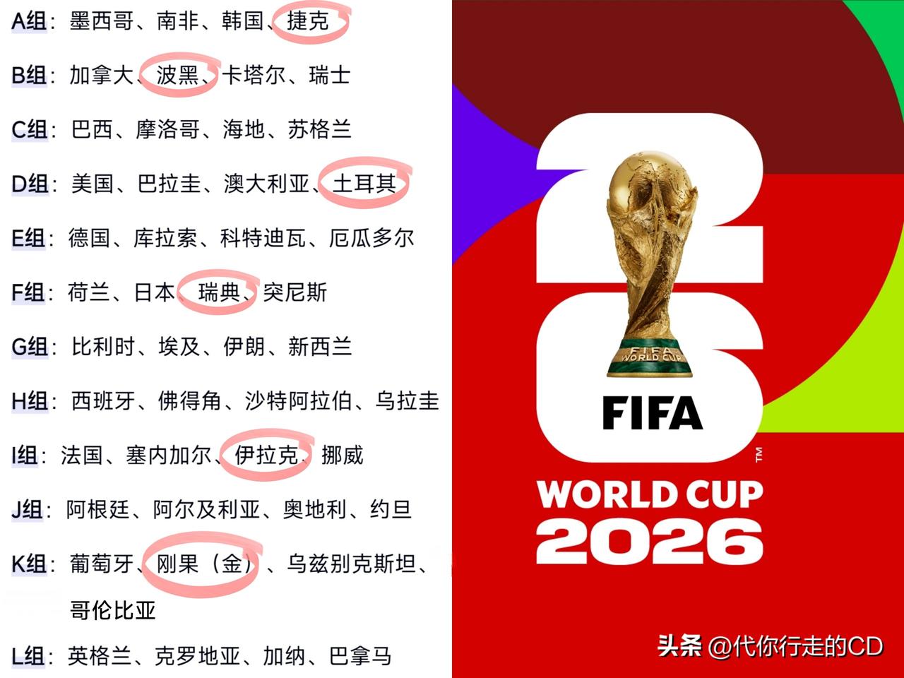 世界杯最后6个幸运儿落位! 4支球队实现第2次参赛,土耳其继2002年后再次挺进世界杯,瑞典在预选赛仅积1分、小组垫底的情况下、凭借附加赛中接连淘汰乌克兰和波兰的出色表现,第13次打入世界杯决赛圈。 美加墨世界杯48强全诞生,拿到最后6张门票的球队是: 一、瑞典 上一次参加世界杯:2018年 参加世界杯次数:13次 最好成绩:1958年亚军 二、土耳其 上一次参加世界杯:2002年 参加世界杯次数:3次 最好成绩:2002年季军 三、捷克 上一次参加世界杯:2006年 参加世界杯次数:2次 最好成绩:小组第3(未出线) 四、波黑 上一次参加世界杯:2014年 参加世界杯次数:2次 最好成绩:小组第3(未出线) 五、民主刚果 上一次参加世界杯:1974年 参加世界杯次数:2次 最好成绩:小组垫底(未出线) 六、伊拉克 上一次参加世界杯:1986年 参加世界杯次数:2次 最好成绩:小组垫底(未出线) 说明:参加世界杯次数包含2026年世界杯;最好成绩为截止目前取得的成绩。 一起聊聊足球 2026美加墨世界杯