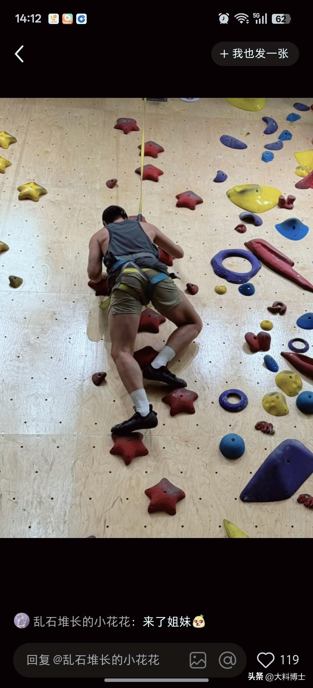 周一围原来是肌肉男!电视上被他骗了,儒雅形象反差,肌肉爆炸 近日,演员周一围的一组室内攀岩照在网络引发热议,彻底打破了观众对他“荧屏儒雅”的固有印象。 照片中,周一围身着粉色网眼背心,肩背、手臂肌肉线条饱满,肱二头肌轮廓分明,身材魁梧健硕,完全是健身达人的状态。 他系着专业攀岩安全带,在攀岩墙前对着镜头比出点赞手势,笑容爽朗,状态活力满满。 另一张攀岩动态图里,他背身发力攀爬,腿部、背部肌肉紧绷,核心力量十足,动作利落,展现出极强的运动能力。 一直以来,周一围在荧幕上塑造的多是沉稳、儒雅的角色,无论是《长安十二时辰》里的狠辣谋士,还是《海上牧云记》中的帝王,都给人斯文内敛的印象。 此次攀岩照曝光,其发达的肌肉与荧屏形象形成强烈反差,让不少网友直呼“反差感拉满”。