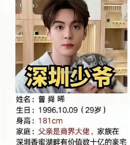 内娱真少爷图鉴!低调藏不住的顶级家世深圳少爷·曾舜晞1996年生,身高181cm,父母均为深圳商界大佬,家族坐拥香蜜湖畔价值数十亿豪宅,精通三国语言,从影全凭兴趣,低调无架子✨北京少爷·王天辰1993年生,身高185cm,军人世家出身,外公是著名军旅诗人峭岩,母亲曾赴前线参与医疗工作,部队大院长大,自带沉稳正气💪东北少爷·魏大勋1989年生,身高183cm,父亲是吉林知名企业家,旗下横跨地产、商场等数十家公司,家族深耕吉林商业版图,低调拍戏不拼家底🏠陕西少爷·马伯骞1996年生,身高173cm,美籍华裔,父亲是国际建筑大师、清华毕业的马清运,外公是初代女排教练,外婆是女篮队员,体育与艺术世家🎨