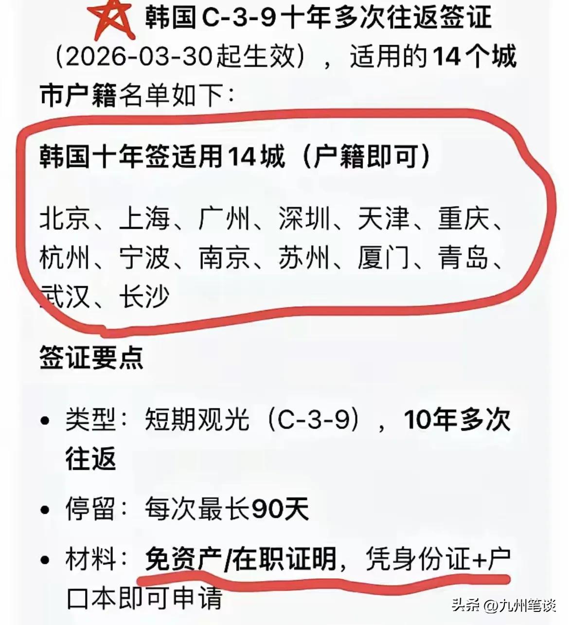 韩国公布对中国十年内可以多次往返的个人自由行十四个大城市。韩国人眼中的中国十四个富裕大城市,广东只有广州、深圳入选。东莞、佛山没有入围。 我国前十大城市成都最意外,没能进入韩国人的法眼! 四大直辖市都入选。重庆是西南地区唯一的城市。 武汉、长沙是中部的代表城市。 东北没有一个城市入选,只能说韩国人是故意的,东北有我国最多的朝鲜族居民,但韩国没有对东北城市开放十年个人多次往返签证,应该是有所顾虑。 长三角是最大赢家,长三角主要城市都入选了,连宁波都有份。可见长三角的富裕程度。