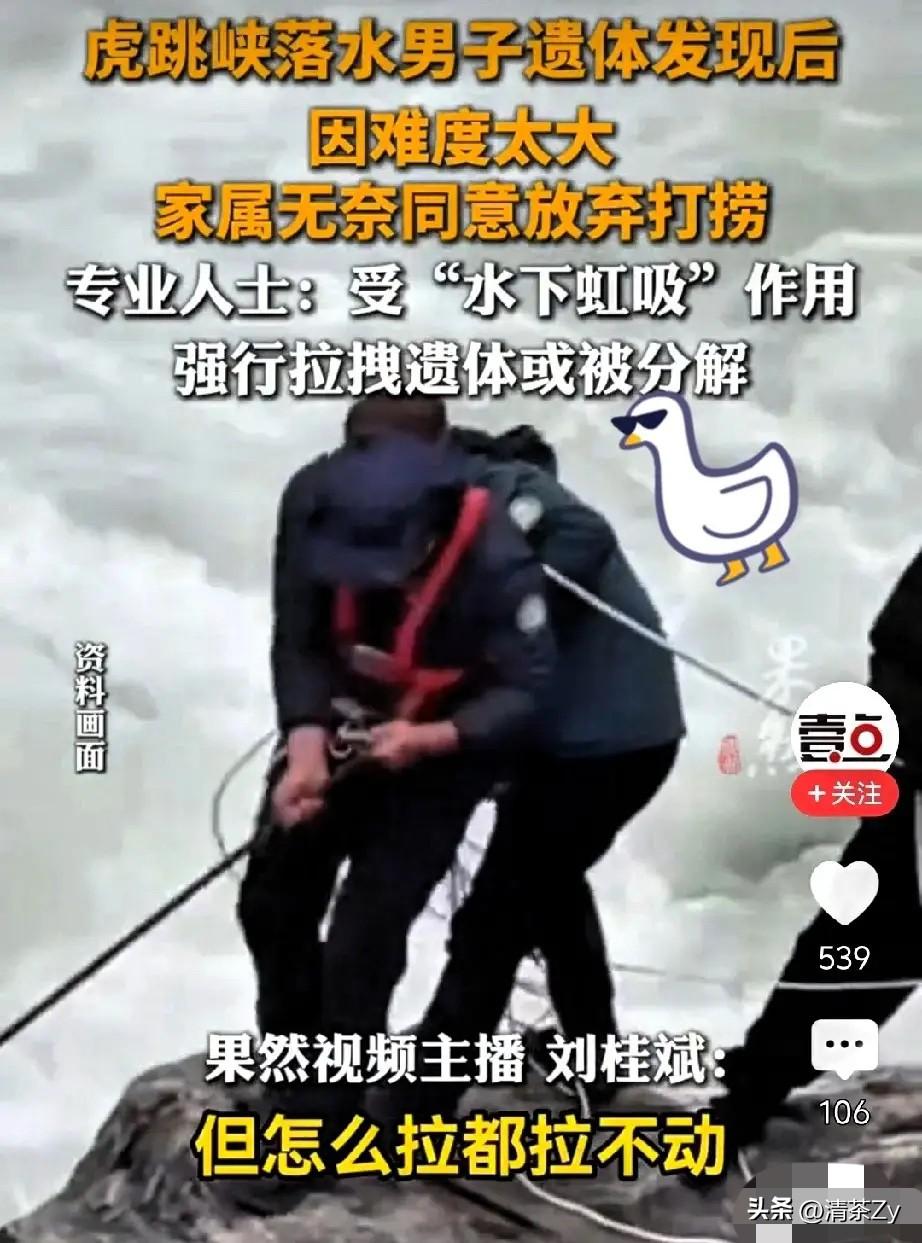 为了一只杯子搭上一条性命真是太可惜了! 来自山东枣庄的美术老师小杜,利用春节假期和女友到云南拍摄婚纱照!他们准备今年五一结婚! 拍完照片后,两人想着反正还有假期一定要好好游览一下云南的大好河山,于是就选择了虎跳峡! 一路上俩人非常开心,有说有笑的互相拍着照片!转眼就来到了虎跳峡的“发疯石”附近! 因为水杯不小心掉在了地上,小杜老师就来到了水边想进行清洗,结果脚下一滑人就滑到了水里! 人卡在了水深5米的石头缝里,由于水下的虹吸作用,人根本无法打捞上岸!专业人员多次尝试都未能成功! 网友也给出了很多主意,据悉这支救援队是“天花板级别的”都无能为力,家属无奈只能放弃打捞! 1997年出生的小杜老师就这样离开了,最心痛的是他的父母,两位老人只有这么一个孩子!往后余生父母只能在孤独和悲伤中度过! 俗话说,君子不立危墙之下!任何时候都不能把自己置身于危险的境地,因为每个人的生命不止是自己的!